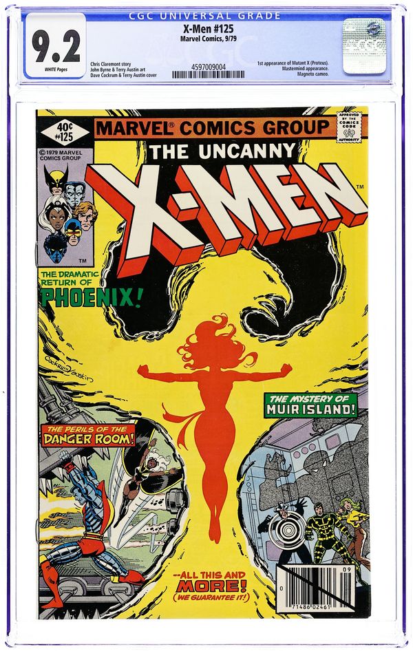 Direct Edition. As the cover says: the dramatic return of Phoenix! "There's Something Awful on Muir Island!" "...!" Story by Chris Claremont and John Byrne. Art by John Byrne and Terry Austin. First appearance of Mutant X (Proteus). 36 pgs. Cover price $0.40. Grade: CGC 9.2 explanation of grade Condition: Used (collectible)