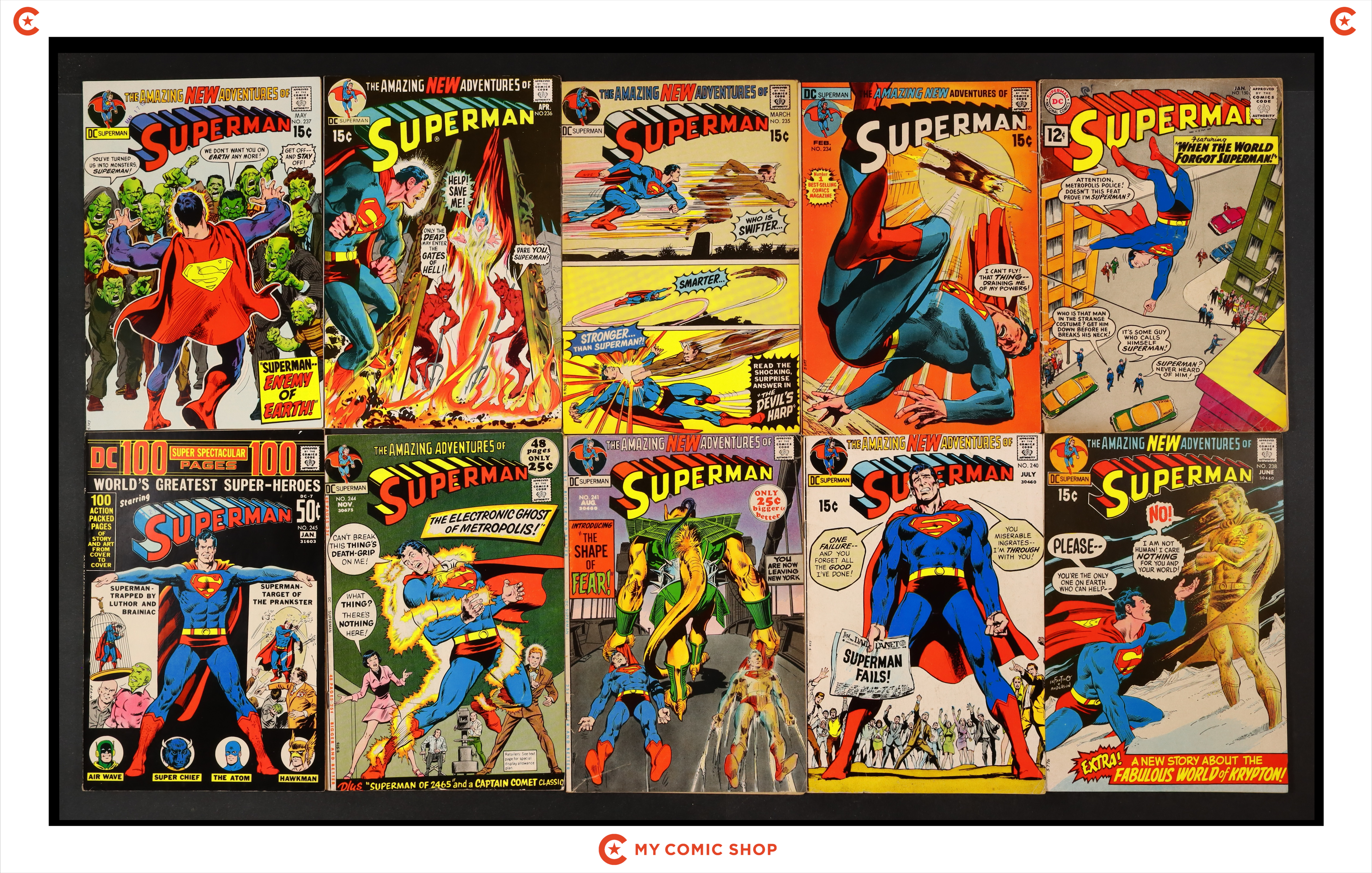 Issues 150, 234, 235, 236, 237, 238, 240, 241, 244, and 245 of Superman (1939 1st Series). Most will grade in the FN to VG range with #150 grading FR/GD.