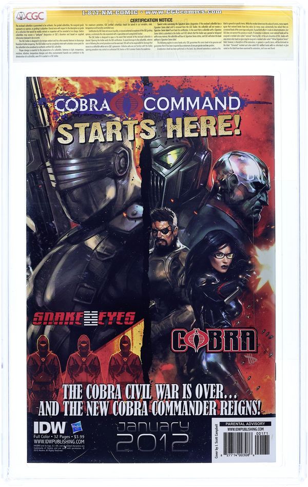 Starts Feb 9 Variant Cover by J. Scott Campbell. Andy Hartnell (w) o Chris Madden (a) o J. Scott Campbell, Madden (c) For the first time ever, creators J. Scott Campbell and Andy Hartnell introduce a new Danger Girl to the team! Who is she? What are her skills? Where is she from? What are her measurements? You'll find those answers and more as she joins the world's sexiest spy agency in their most explosive adventure yet! And not only that, but we also up the action and thrills by welcoming soon-to-be-superstar, artist Chris Madden to his first-ever Danger Girl epic! Consider yourself debriefed! Grade: CGC 9.9 explanation of grade Condition: Used (collectible)