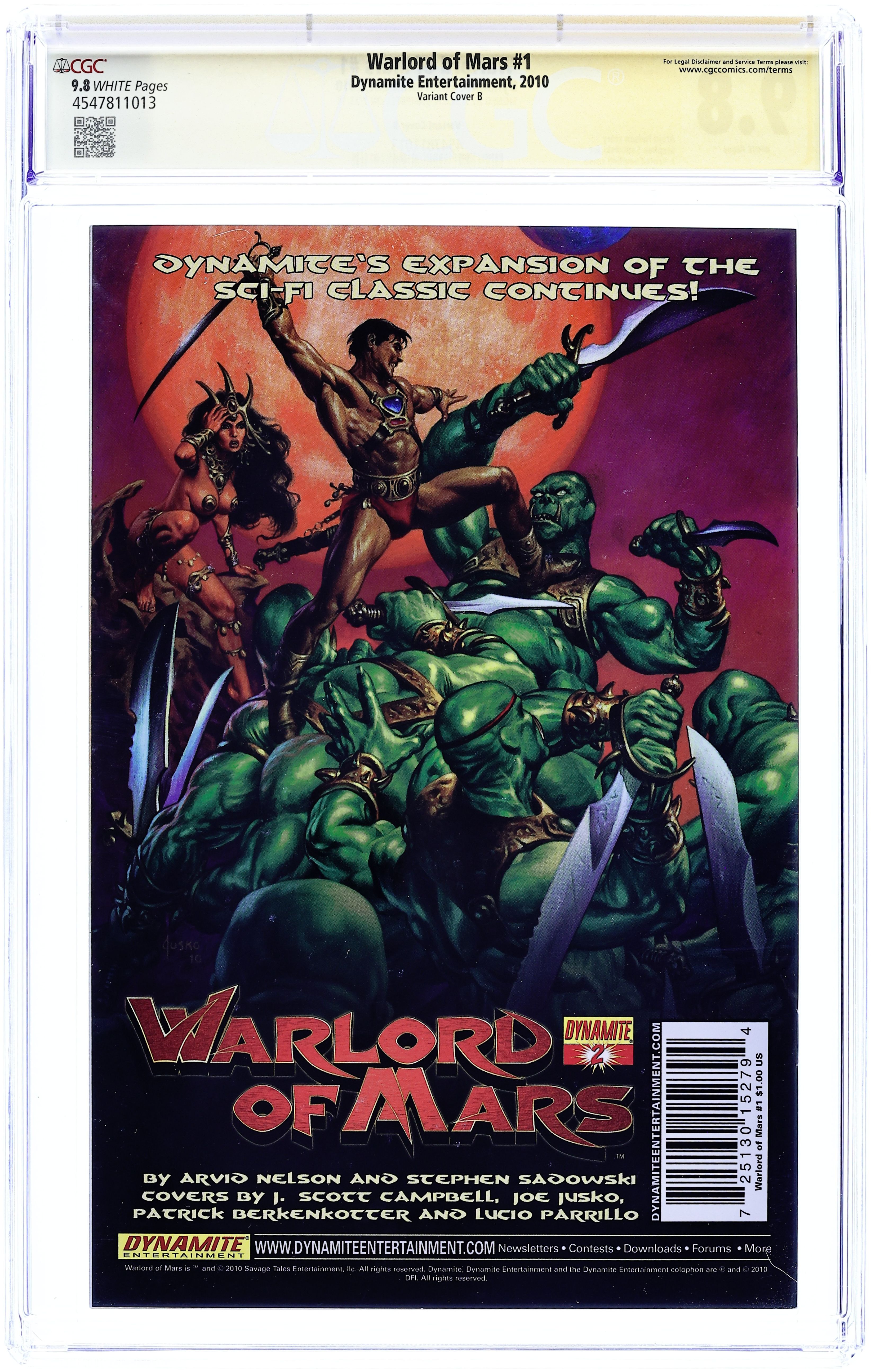 Published Oct 2010 by Dynamite Entertainment.Warlord of Mars (2010 Dynamite) 1B CGC 9.8 SS Campbell