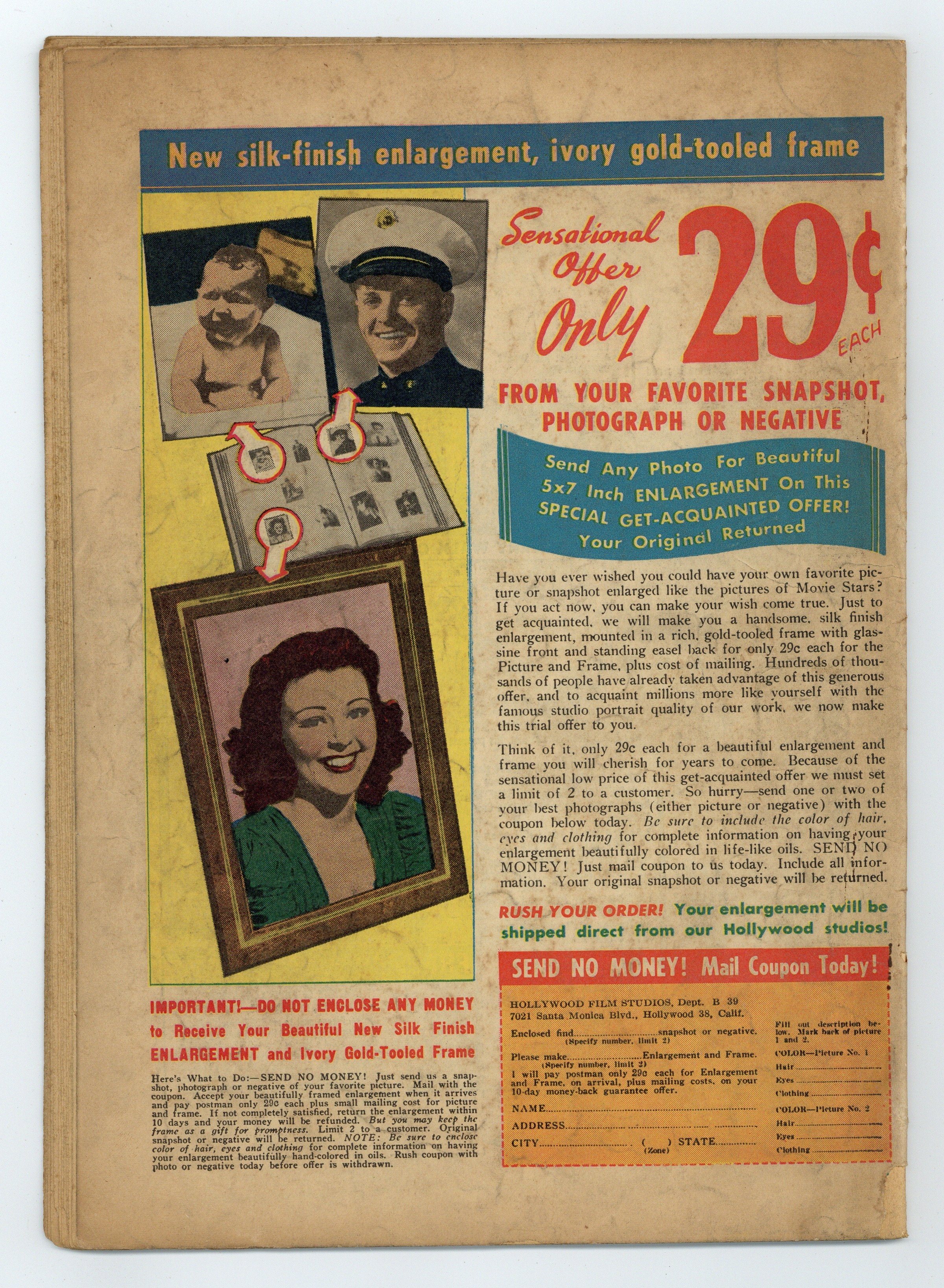 - 3/4" Cumulative spine split. Centerfold detached at one staple. Staple rust. Rust migration.