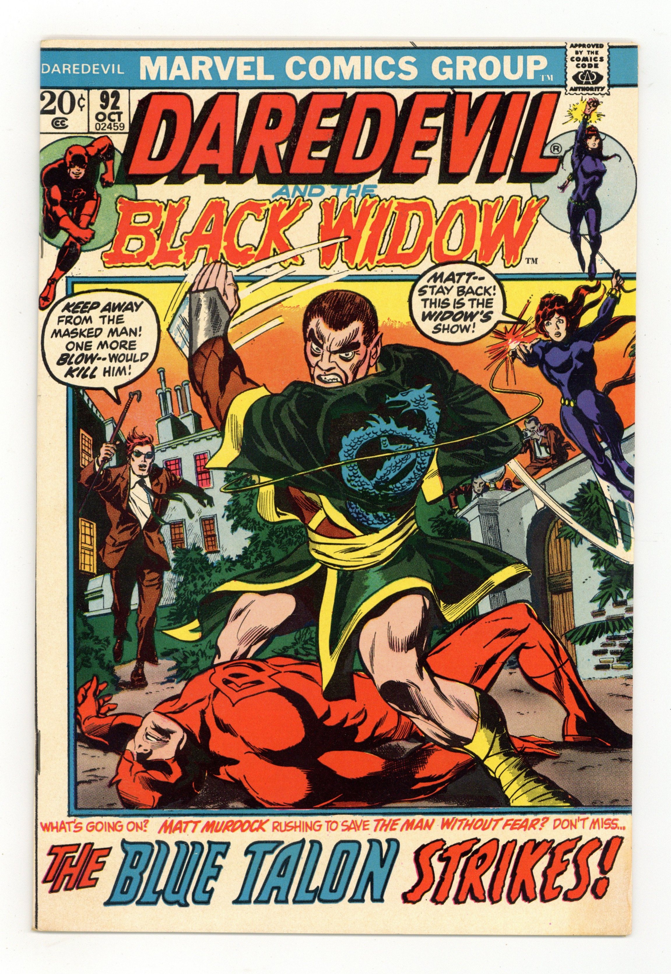 Starts Feb 9 First appearance of the Blue Talon. Cover pencils by Gene Colan and John Romita (re-touches), inks by Tom Palmer and John Romita (re-touches). On the Eve of the Talon!, script by Gerry Conway, pencils by Gene Colan, inks by Tom Palmer; The Black Widow and Danny French are captured by Damon Dran and interrogated about Project Four; A San Francisco reporter claims that Matt Murdock is actually Daredevil until Matt shows up to a fight between DD and the Blue Talon; Black Panther appearance. 36 pgs. Cover price $0.20. Cover price $0.20. Grade: FN 6.0 explanation of grade Condition: Used (collectible)