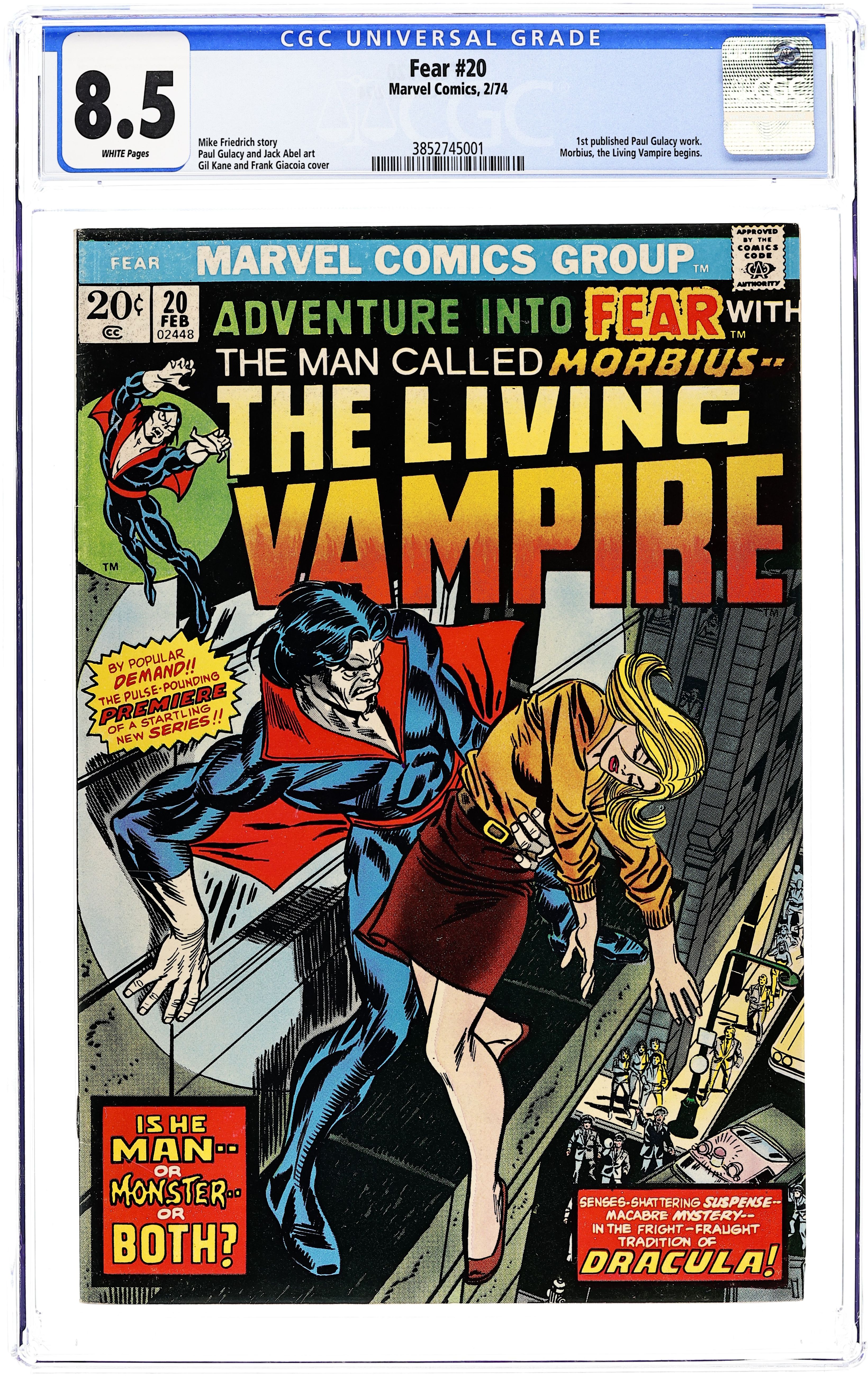Starts Feb 9 Morbius stories begin: "Morbius the Living Vampire!" Script by Mike Friedrich, pencils by Paul Gulacy, inks by Jack Abel. Cameos by Spider-Man and the Human Torch. Brief X-Men appearance. Reprint back-up story: "Midnight in the Wax Museum!" with art by Richard Doxsee. Gil Kane cover pencils. Cover price $0.20. Grade: CGC 8.5 explanation of grade Condition: Used (collectible)