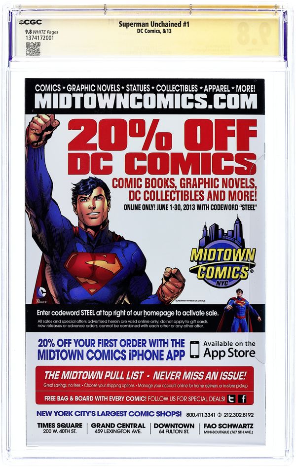 Superman Unchained (2013 DC) 1COMBO CGC 9.8 SS Snyder Lee Combo Pack Variant