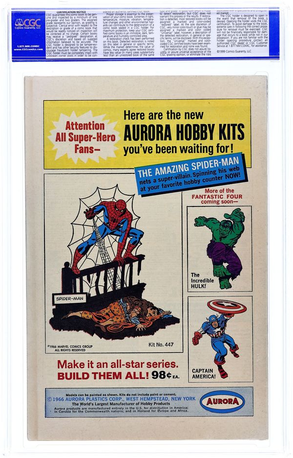 Cover by John Romita Sr.. The third appearance of the Lizard in Spidey Smashes Out!, script by Stan Lee, art by John Romita Sr.; The Lizard heads to Dr. Connor's lab to find a formula to transform reptiles into his personal army; Aunt May worries about Peter; The Lizard and Spider-Man battle aboard a train. Reprinted in Marvel Tales # 185. 36 pgs., full color. $0.12. Cover price $0.12. Grade: CGC 8.5 explanation of grade Condition: Used (collectible)