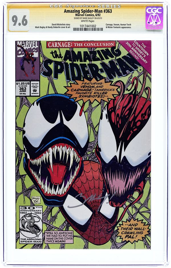 Tags: Marvel Legacy Numbering: Amazing Spider-Man (part 363), Spider-ManAmazing Spider-Man (1963 1st Series) 363 CGC 9.6 SS Bagley