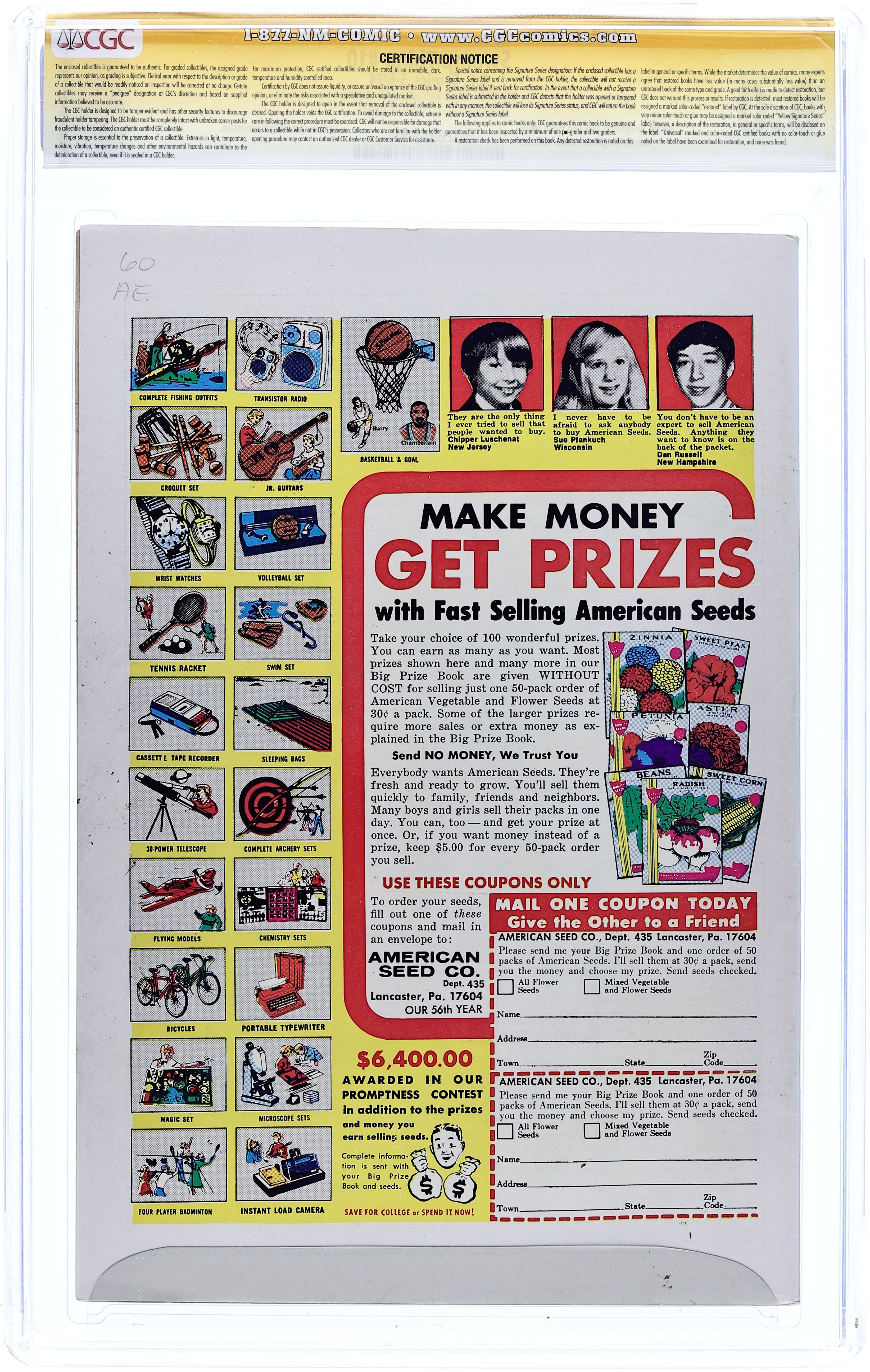 Starts Feb 9 "The Man Who Would Not Die." Swamp Thing rescues an old woman from an escaped convict, and then receives help in spirit form when he goes up against Anton Arcane and his Un-Men. Script by Len Wein, art and cover by Berni Wrightson. Cover price $0.20. Grade: CGC 8.0 explanation of grade Condition: Used (collectible)