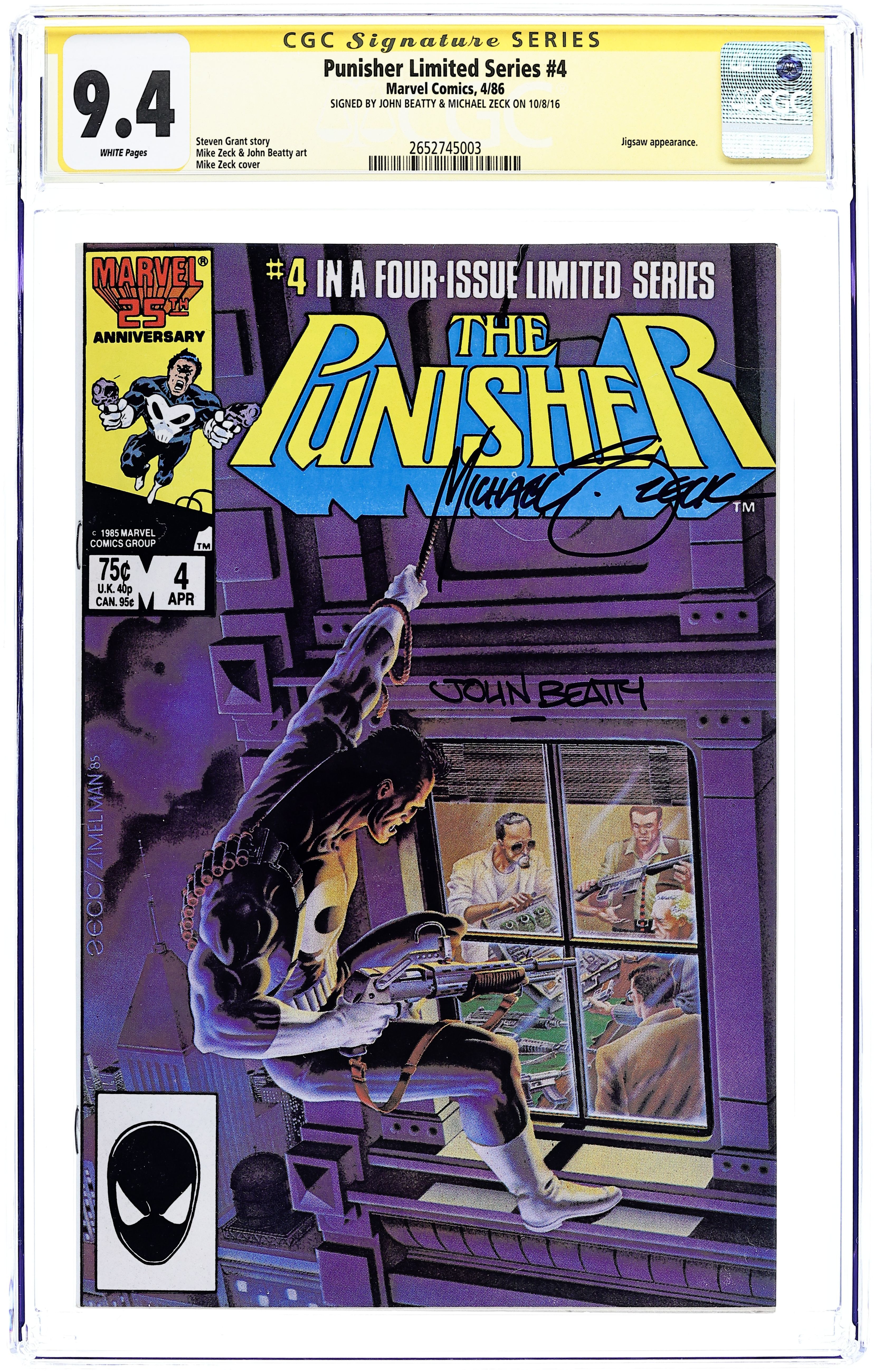 Tags: Marvel Legacy Numbering: Punisher (part 4), PunisherPunisher (1986 1st Series) 4D CGC 9.4 SS Beatty/Zeck