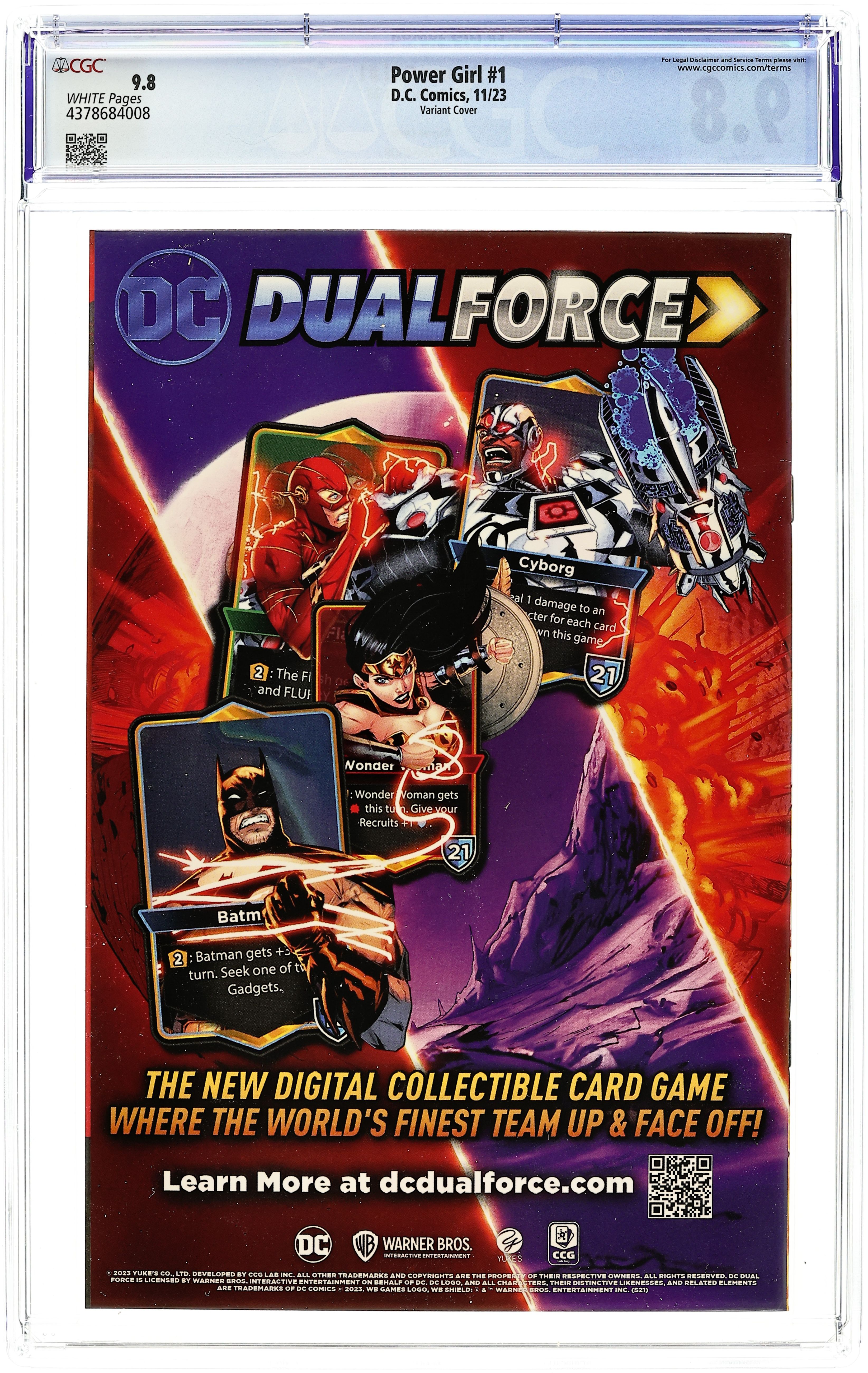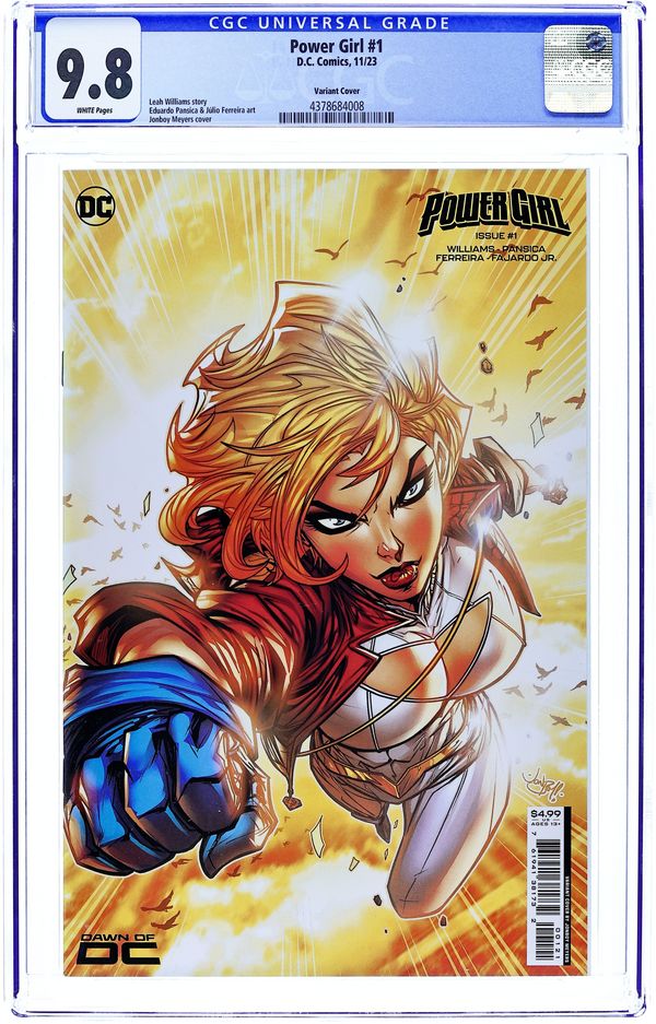Written by Leah Williams. Art by Eduardo Pansica, Julio Ferreira. Cover by Jonboy Meyers. PRETTY, PUNCHY, AND POWERFUL! After the events of Knight Terrors, a long-dormant Kryptonian threat has returned to take down Superman and his family. Who could possibly stop it? Well, according to the Man of Steel, its Power Girl! Witness a road trip race against time as Paige reconnects with her roots to save the world from her deadly past. Power Girl Special writer Leah Williams returns with artist Eduardo Pansica (Supergirl) for an ongoing series of epic proportions! 32 pages, full color. Rated T+ Cover price $4.99. Grade: CGC 9.8 explanation of grade Condition: Used (collectible)