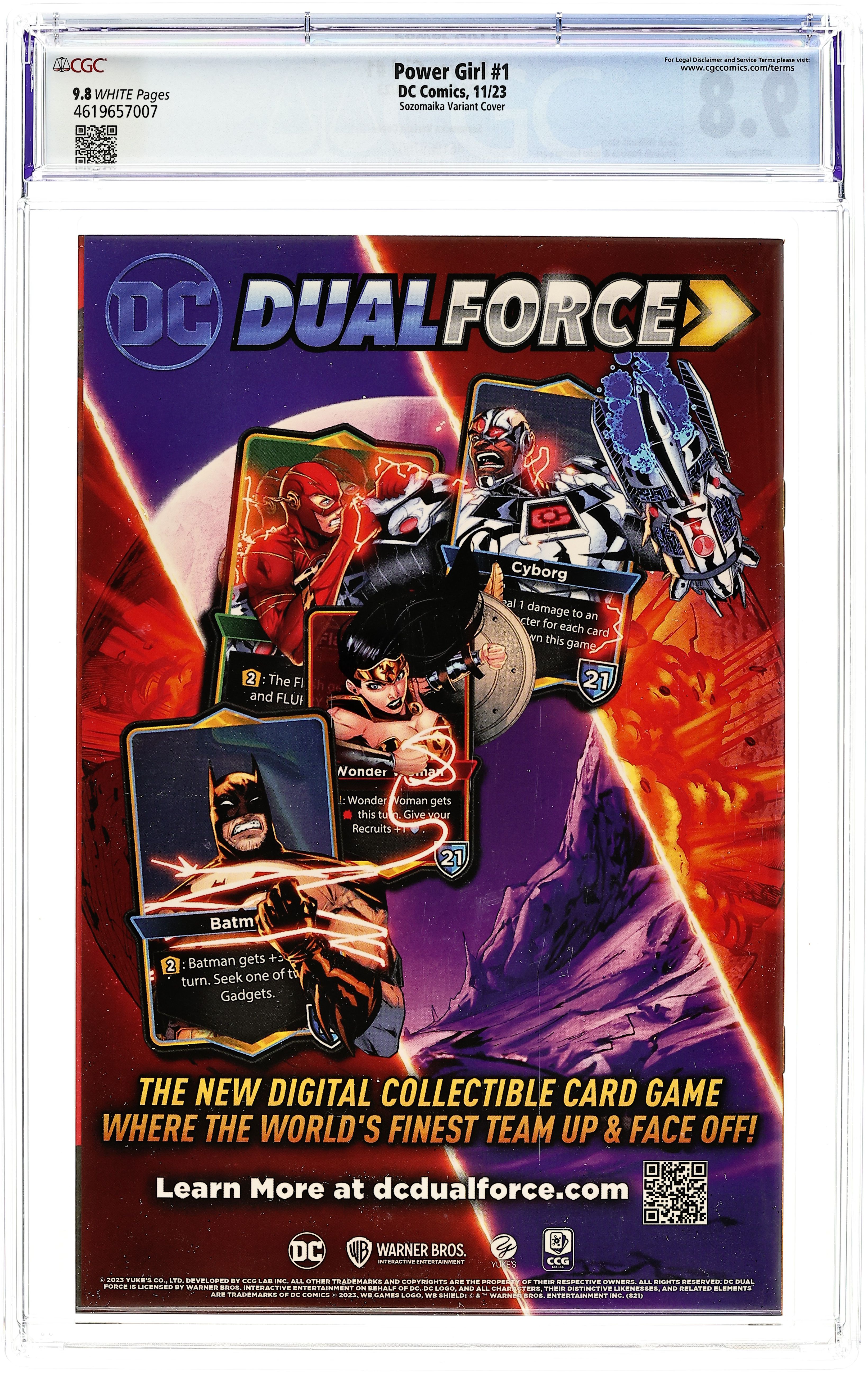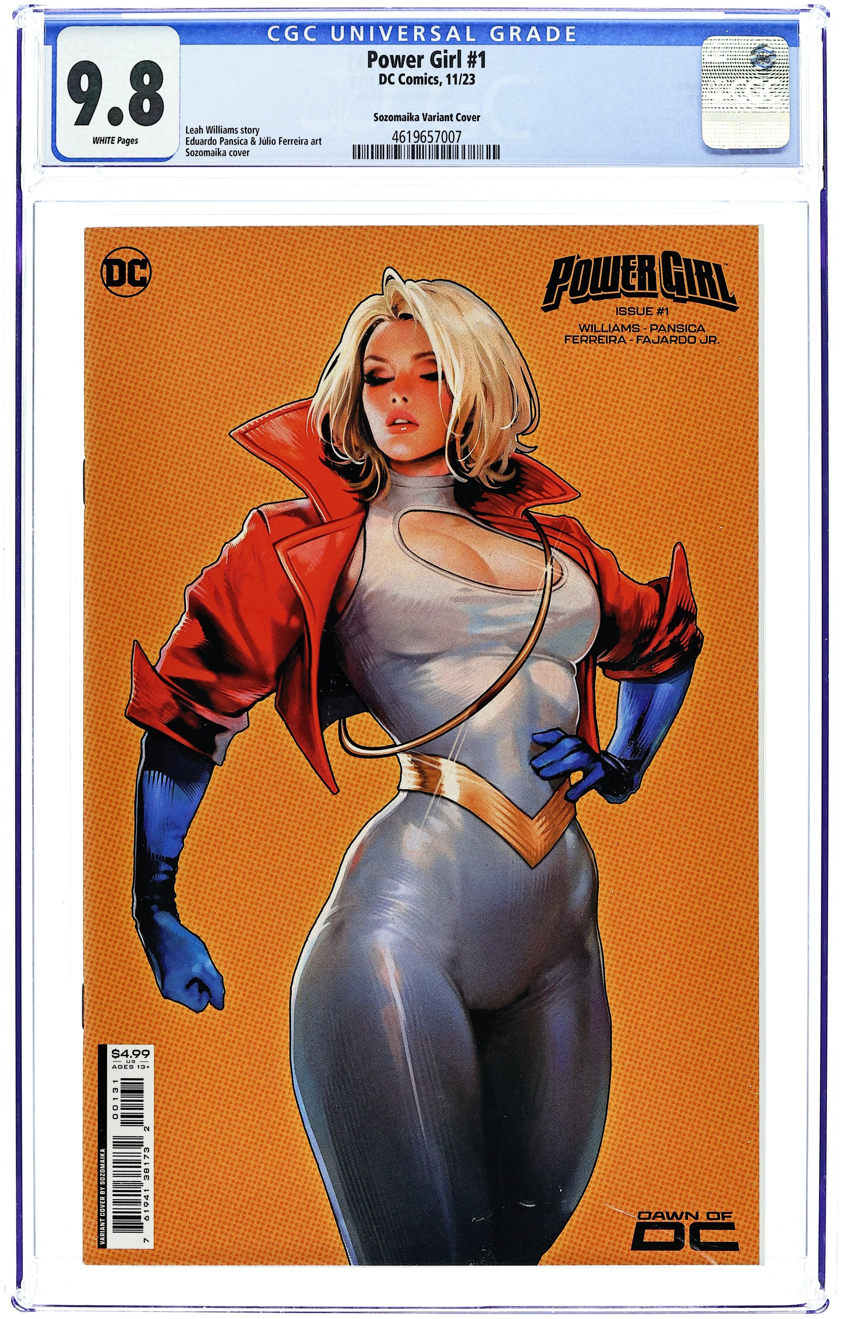 Written by Leah Williams. Art by Eduardo Pansica, Julio Ferreira. Cover by Sozomaika. PRETTY, PUNCHY, AND POWERFUL! After the events of Knight Terrors, a long-dormant Kryptonian threat has returned to take down Superman and his family. Who could possibly stop it? Well, according to the Man of Steel, its Power Girl! Witness a road trip race against time as Paige reconnects with her roots to save the world from her deadly past. Power Girl Special writer Leah Williams returns with artist Eduardo Pansica (Supergirl) for an ongoing series of epic proportions! 32 pages, full color. Rated T+ Cover price $4.99. Grade: CGC 9.8 explanation of grade Condition: Used (collectible)