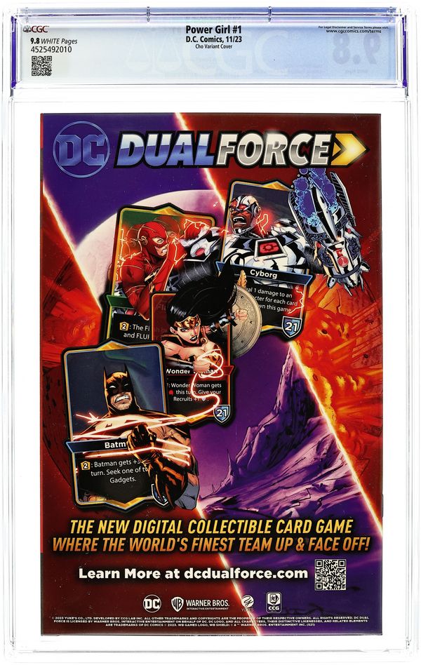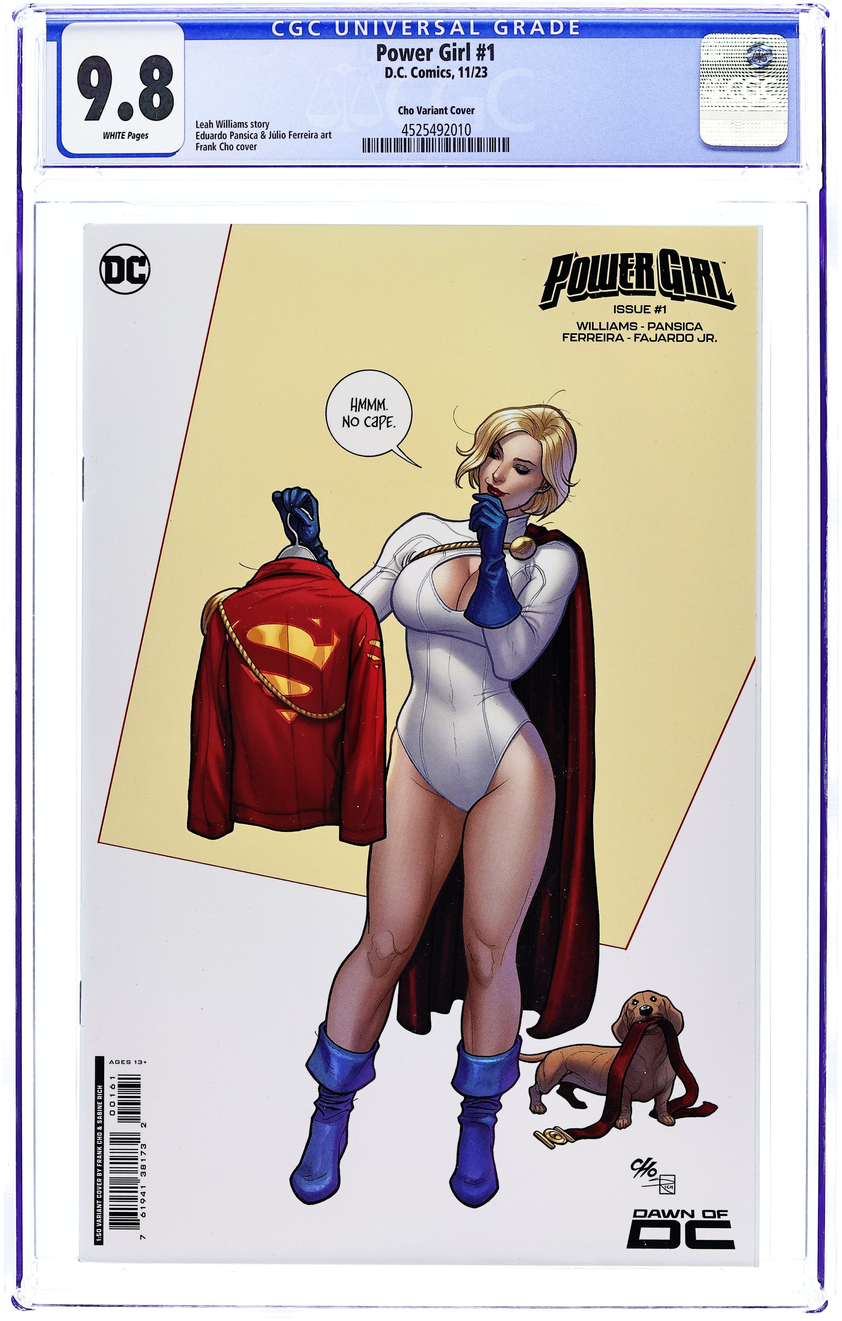 Limited 1 for 50 Retailer Incentive Variant Cover. Written by Leah Williams. Art by Eduardo Pansica, Julio Ferreira. Cover by Frank Cho. PRETTY, PUNCHY, AND POWERFUL! After the events of Knight Terrors, a long-dormant Kryptonian threat has returned to take down Superman and his family. Who could possibly stop it? Well, according to the Man of Steel, its Power Girl! Witness a road trip race against time as Paige reconnects with her roots to save the world from her deadly past. Power Girl Special writer Leah Williams returns with artist Eduardo Pansica (Supergirl) for an ongoing series of epic proportions! 32 pages, full color. Rated T+ Cover price $4.99. Grade: CGC 9.8 explanation of grade Condition: Used (collectible)