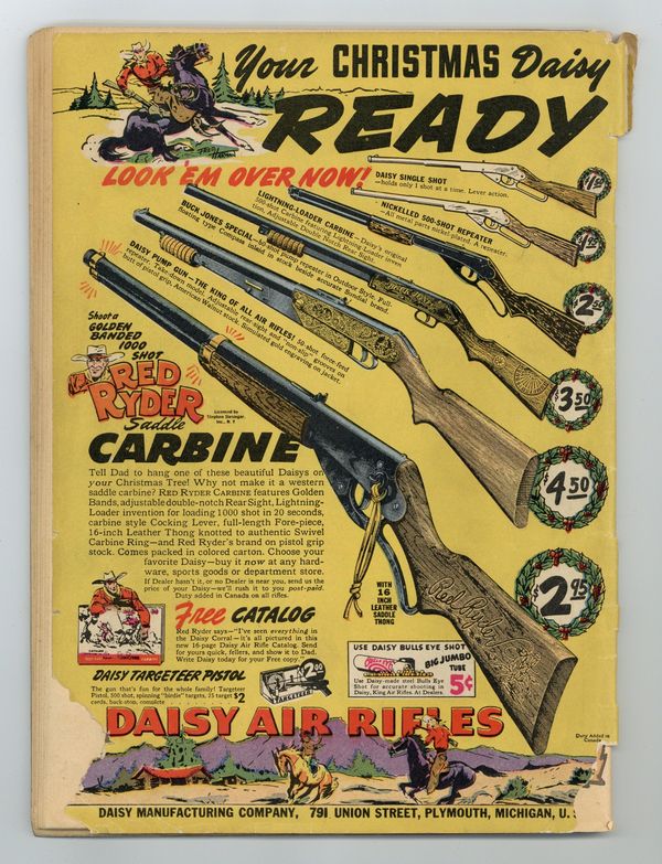Cover art by Roland "Ramona" Patenaude [as Pat]. Claws of the Cat, art by Al Carreno; The Star Diamond is on exhibit at Bufany's, a temptation for many thieves, including the Cat, a man with a claw instead of a hand. The Octopus of the Underground, art by Al Carreno; An insane gangster called the Octopus has an undersea hideout where the Blue Beetle and Joan almost die, until Mike rescues them. The Dead Don't Kill, art by Louis Cazeneuve; a series of murders are planned to gain control of an inheritance. Cargo of Doom, art by Louis Cazeneuve; Judith Carthy's life is in danger because she has papers that proved Felland is head of an organization that stole army secrets. The Devil's Magic Wash Tub starring Davy the Wish Master. King of the Chess Killers starring the Gladiator, pencils by Pierce Rice, inks by Arturo Cazeneuve. 68 pgs. $0.10. Cover price $0.10. Grade: FR/GD 1.5 explanation of grade Condition: Used (collectible)