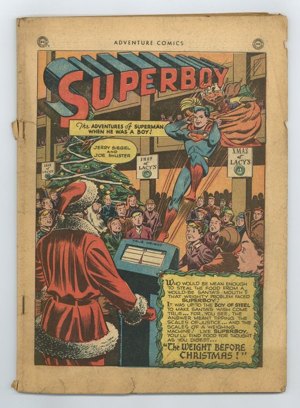 Cover art by Stan Kaye. The Weight Before Christmas, script by Don Cameron, art by Al Wenzel; Regan used to be the Santa for Lacy's but he's lost to much weight, so Superboy has to get him to up to snuff in a week; Or a crooked Santa will take his place and set the store up for robbery. The Case of the Good Luck Crooks starring Green Arrow, art by George Papp. D-Day in Davy Jones' Locker starring Aquaman, art by John Daly. The Man Who Refused to Die starring Shining Knight, script by Don Cameron, art by Chuck Winter. The Roamin' Roman starring Johnny Quick, pencils by Mort Meskin, inks by George Roussos. Full-page ad for Western Comics # 1. 52 pages, Full Color. Cover price $0.10. Grade: Coverless explanation of grade Condition: Used (collectible)