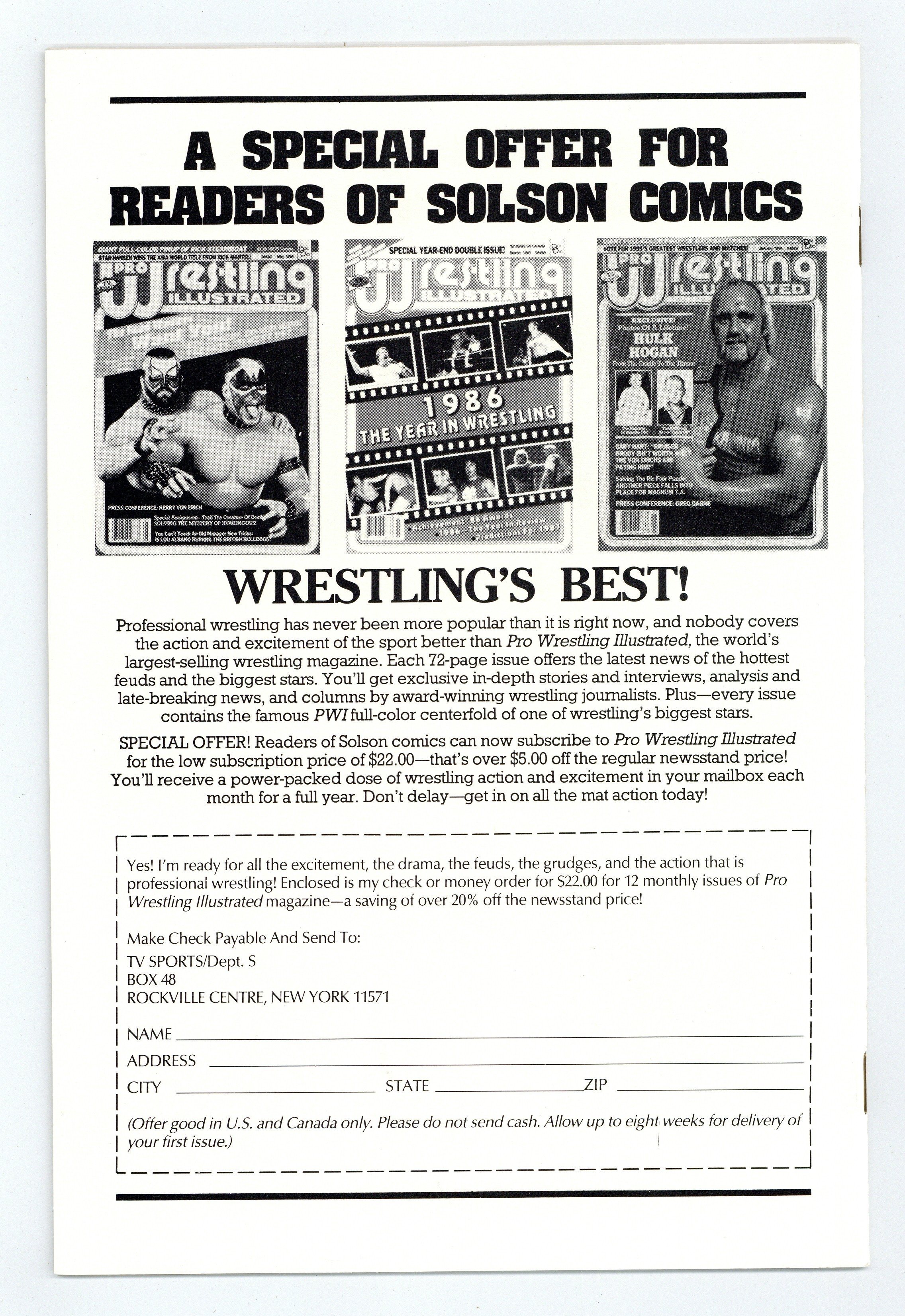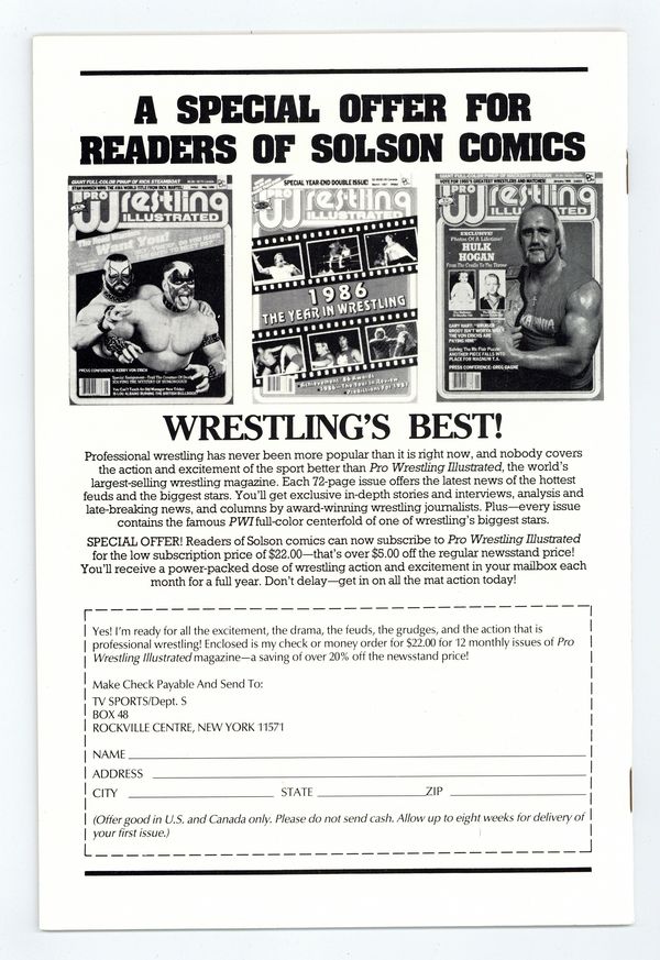 Text by Peter Brody. Art by Don Secrease, Bill Koch, and Paul Daly. Cover by James C. Hallett and Kent Bivens. A guide to martial arts from Solson, the company run by the son of Marvel comics veteran Sol Brodsky, featuring an authorized appearance by the Teenage Mutant Ninja Turtles, published during the height of the first wave of Turtlemania in comics. 32 pages, B&W. Cover price $2.25. Grade: VF- 7.5 explanation of grade Condition: Used (collectible)