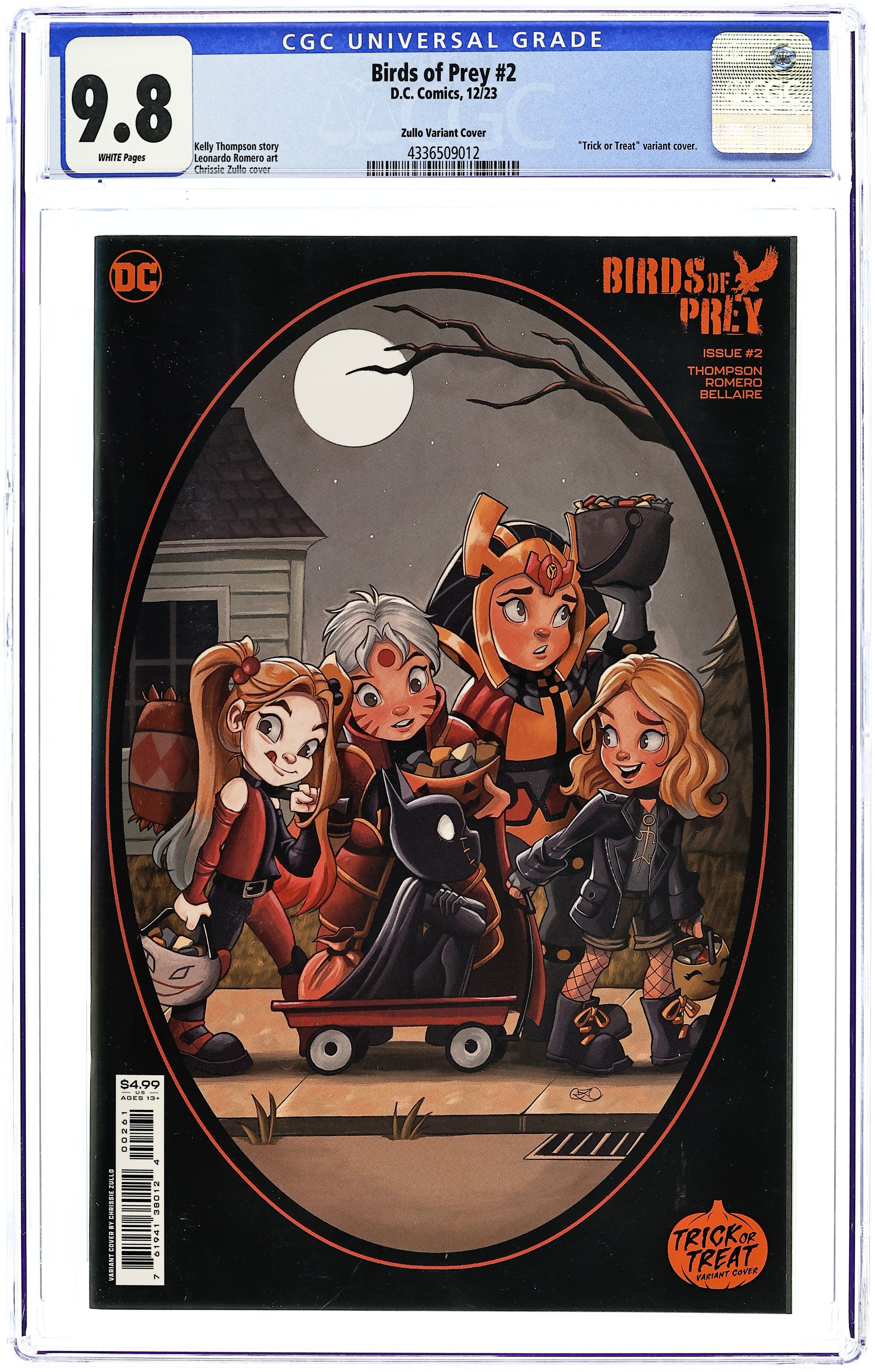 Written by Kelly Thompson. Art by Leonardo Romero. Cover by Chrissie Zullo. BLACK CANARY'S ALL-NEW TEAM ON THEIR FIRST MISSION! Black Canary has built an all-new team with a very specific and very dangerous first mission: extraction! Their target: [REDACTED]! She's being held on [REDACTED] and guarded by a battalion of [REDACTED]. Sounds simple enough, right? Well, then we're explaining it wrong! It's a terrible mission! And before it can even be launched, the Birds have to gather a few mysterious supplies and see some old familiar faces...that they punch! 32 pages, full color. Rated T+ Cover price $4.99. Grade: CGC 9.8 explanation of grade Condition: Used (collectible)