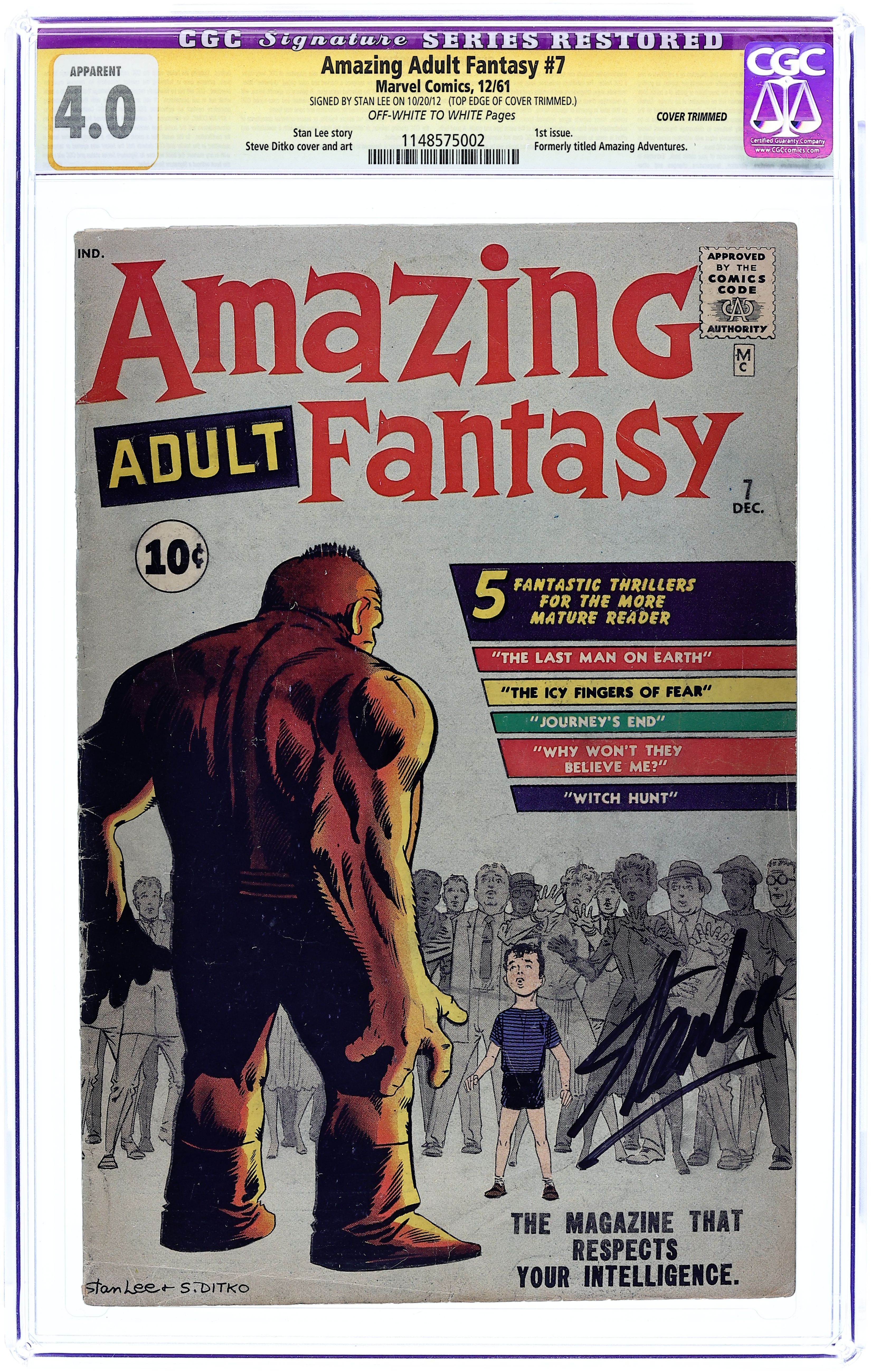 Amazing Adult Fantasy (1961 Marvel) 7 CGC 4.0 Restored SS Stan Lee