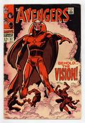 First appearance of the Vision in "Behold...the Vision!" Part 1 of 2. Script by Roy Thomas. Pencils by John Buscema. Inks by George Klein. Cover by John Buscema and George Klein. One of the landmark issues of the silver age! On a rainy night in Manhattan, a strange being enters Janet Van Dyne's apartment and suddenly collapses! The Wasp quickly calls Goliath; and they take the red-hued stranger to Avengers Mansion for examination! Once their Hank Pym discovers that the Vision is a human being constructed of synthetic materials - a synthezoid in fact! When the Vision wakes up, he remembers that Ultron sent him to destroy the Avengers! But now the Vision wants to flip the script on his creator! So he leads Earth's Mightiest Heroes back to Ultron's underground lair! Could this be a trap? Either way Ultron-5 is waiting! And the battle is coming! Will the Vision prove worthy of the Avengers' trust? Cameo appearance by the Black Widow. Avengers Lineup: Black Panther, Goliath, Hawkeye, and the Wasp. (Notes: The synthezoid avenger is not to be confused with the golden age Vision (aka Aarkus). Marie Severin contributed pencils to page 3 - the second to last panel. The letters page includes a letter from comics writer Tony Isabella. This issue was reprinted in Marvel Treasury Edition (1974) #7 and also in Marvel Super Action #18.) 36 pages. Cover price $0.12. Grade: GD+ 2.5 explanation of grade Condition: Used (collectible)