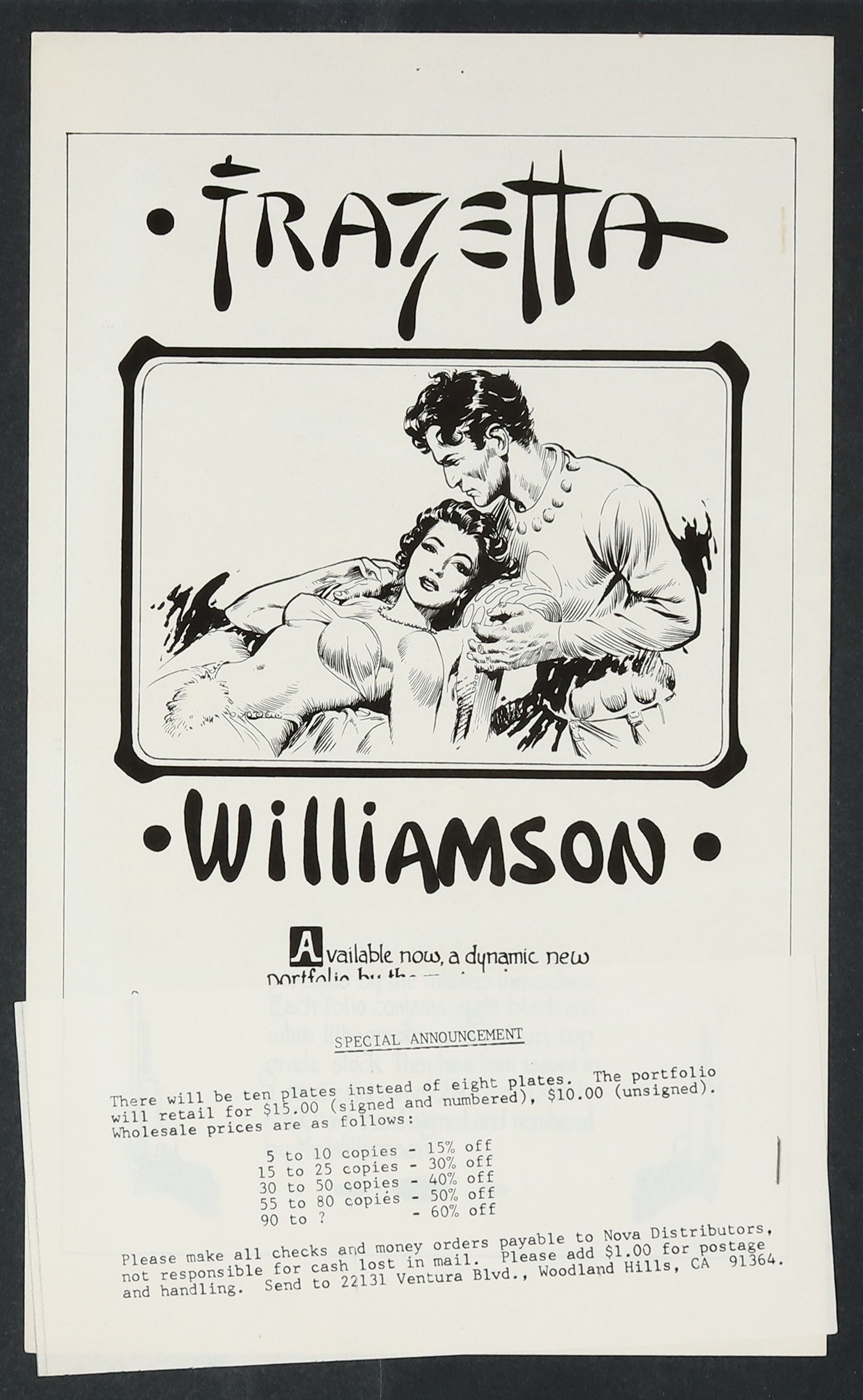 Promoting the release of the portfolio to retailers, this flyer was sent out to retailers ahead of its release with wholesaler pricing on a separate sheet stapled to the flyer. 8 1/2" x 14" (unfolded).