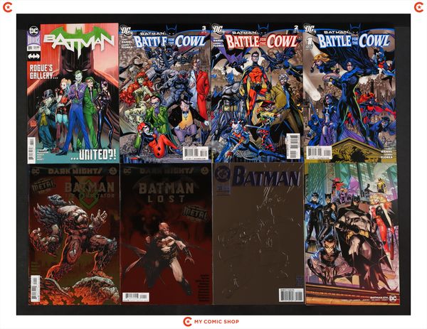 Issues 1A-3A of Batman Battle for the Cowl (2009 DC); 89A, 106B, 129D of Batman (2016 3rd Series); Batman Lost (2017) 1A; and Batman The Devastator (2017) 1A. Most will grade in the VF/NM to NM range.