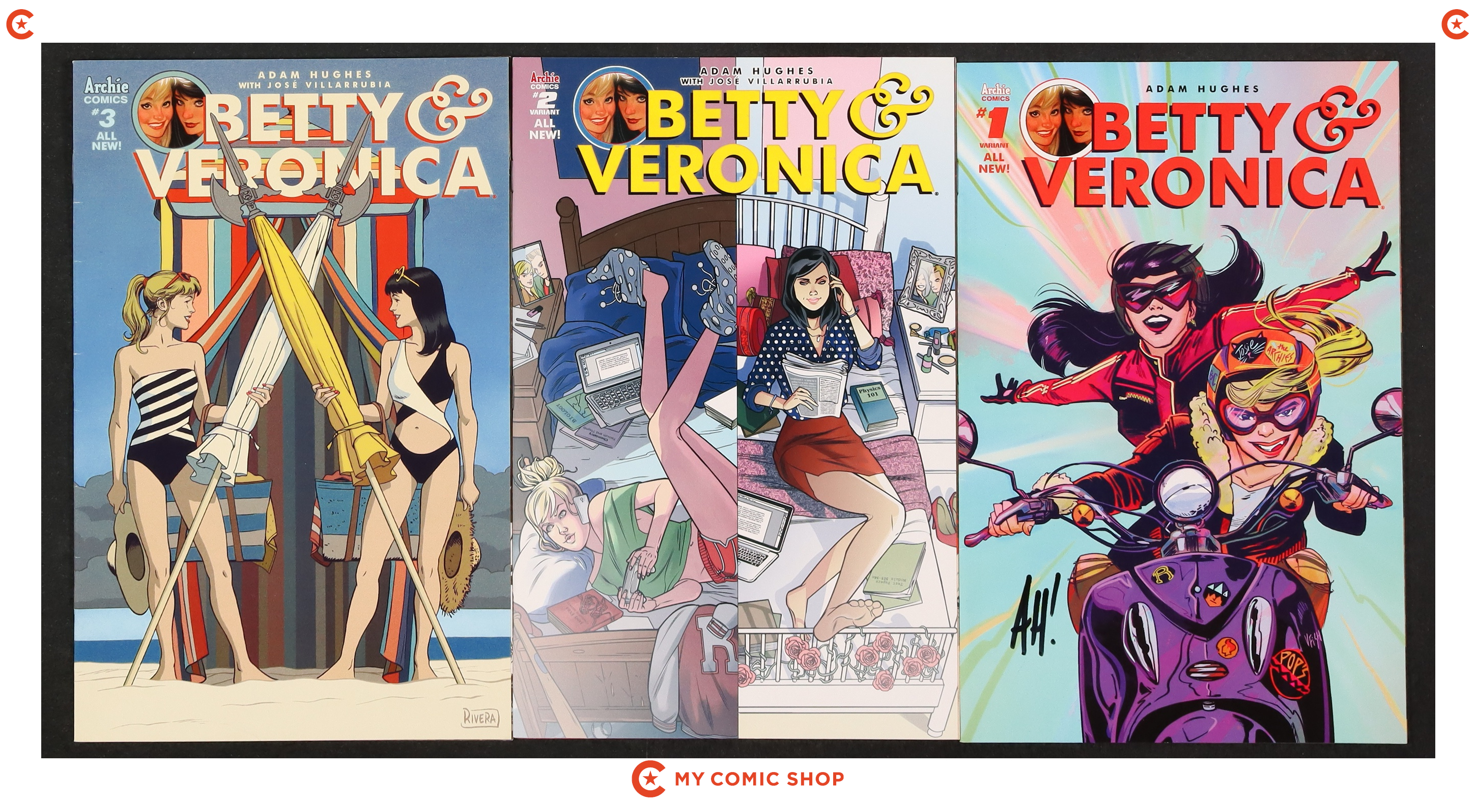 Issues 1H (signed by Adam Hughes, no certification is included); 2D, 3E of Betty and Veronica (2016 2nd Series). Most will grade in the FN/VF to VF+ range.