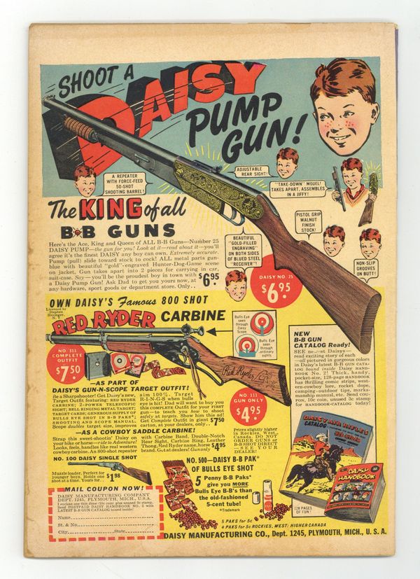 Cover by Kurt Schaffenberger. Stories by Howard Boughner, Al Liederman, Art Helfant and Otto Binder. Art by Howard Boughner, Bud Thompson, Al Liederman, Art Helfant and Joe Certa. Superhero action with Freddy Freeman, who gains the same powers as his hero Captain Marvel, better known these days as Shazam. Captain Marvel Jr. must figure out the connection between a strange hovering craft and natural disasters that seem to spell the end of the world. Young newspaper publisher Inky puts himself in harm's way to cover a story like the grown-up newspapers, and Marvel Jr. must get him to safety. Freddy's act of kindness makes him an investor in the first working Perpetual Motion Machine. Plus a Captain Marvel Jr. trivia quiz. The Day The World Almost Ended; Judge Smudge; Rubbernose Randolph; The Boy Headline Hunter; His Aromatic Adventure; Captain Marvel Jr. Quiz; Copper's Hunch; Kanvasback: Zoo Zany; The Man Who Destroyed Friction! 48 pages, Full Color. Cover price $0.10. Grade: GD/VG 3.0 explanation of grade Condition: Used (collectible)