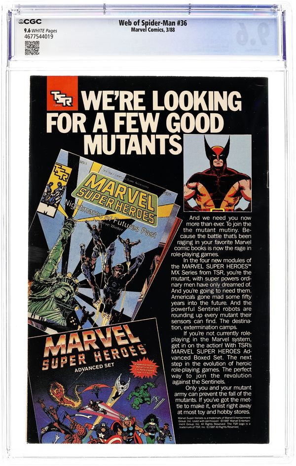 Web of Spider-Man (1985 1st Series) 36D CGC 9.6