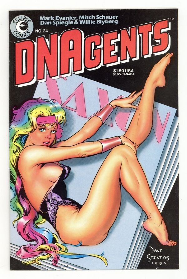 Ends Feb 23 8:00 PM CST Bid History 8 bids Current Bid $21 Your Secret Max Bid If you'd like to bid, please log in or register. Cover by Dave Stevens. While the DNAgents, with Crossfire's help, try to track down the Detonator, a magazine publisher makes Rainbow a tempting offer in an untitled story. Script by Mark Evanier and art by Mitch Schauer, Willie Blyberg & Dan Spiegle. Cover price $1.50. Grade: VF- 7.5 explanation of grade Condition: Used (collectible)
