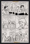 Once again, the universe conspires to keep Josie and Alan M. apart! While Josie waits in the freezing winter for Alan to arrive, the soda jerk takes notice of the 'living doll' standing outside and Alan, anxious to meet her has a pants malfunction. A great page that encapsulates the core drama that's made Archie Comics a mainstay. Pencil and ink on comic art board. 10 1/2" x 16 1/4".