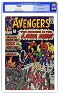 Cover pencils by Jack Kirby, inks by Vince Colletta. "The Invasion of the Lava Men!", script by Stan Lee, pencils by Jack Kirby, inks by Paul Reinman; The Avengers return to their mansion to inspect the damage caused by the battle with the Hulk; Days later, a mysterious high-pitched sound destroys a computer in one of Tony Stark's factories in Long Island and Iron Man is informed; Meanwhile, Giant-Man and the Wasp are conducting experiments inside of a large anthill; They are also affected by the noise and manage to escape before the anthill collapses; In his medical office, Don Blake reads about the effects of the noise in the newspaper; Thor meets up with Captain America and Rick Jones, who are training, and they witness another shockwave; The six heroes investigate the source of this new unknown threat; Meanwhile, in an army base in the west of the country, a strange rock breaks the surface of the earth, and soldiers investigate. Roster includes: Captain America, Thor, Iron Man, Wasp, and Giant-Man. Appearance by the Hulk. First letters page; letter to the editor from comics artist Alan Weiss. 36 pgs., full color. $0.12. Cover price $0.12. Grade: CGC 4.0 explanation of grade Condition: Used (collectible)