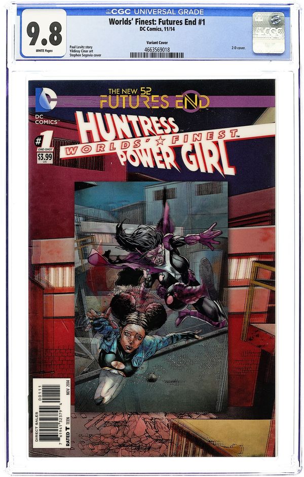 3-D cover. Written by Paul Levitz. Art by Yildiray Cinar (line art) and Jason Wright (colors). Cover by Stephen Segovia. Power Girl must break into Cadmus Island to free Huntress - but she ends up a prisoner herself! 32 pages, full color. Cover price $3.99. Grade: CGC 9.8 explanation of grade Condition: Used (collectible)