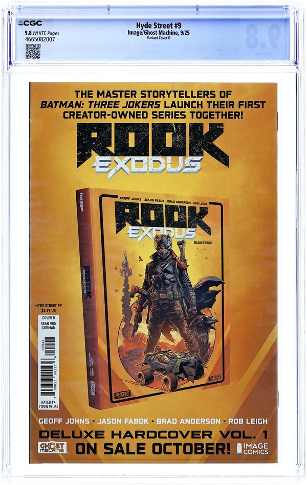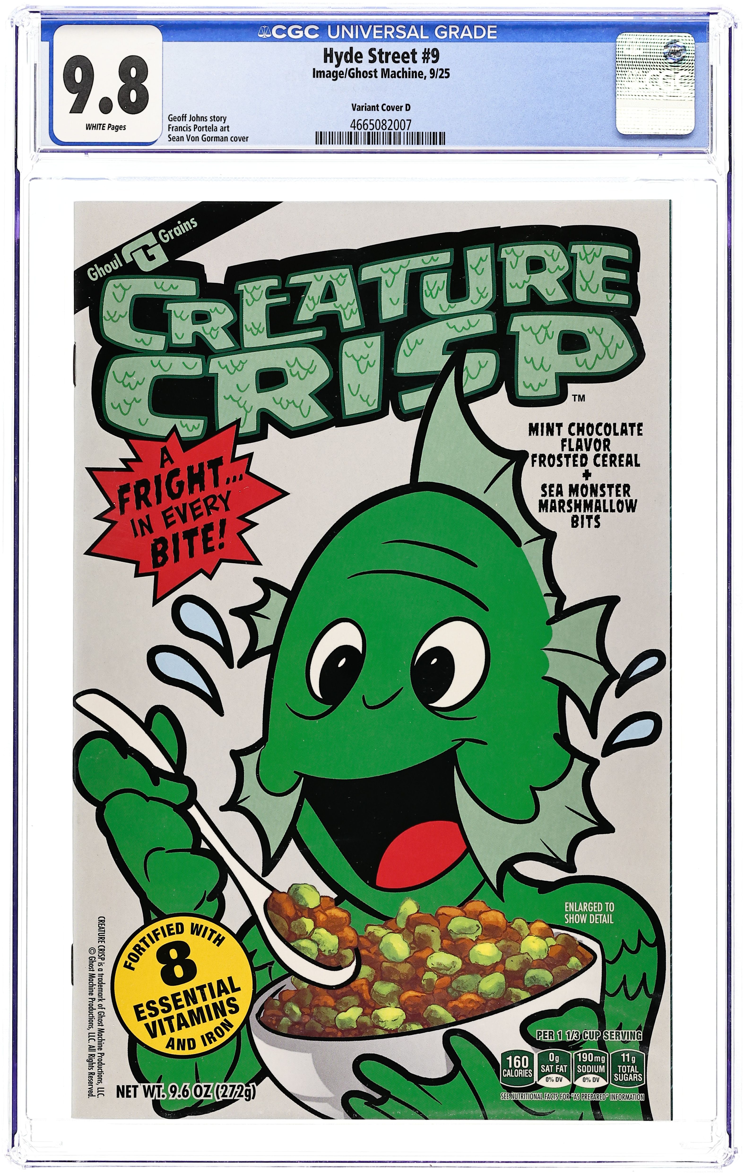 Starts Apr 4 Limited 1 for 20 Retailer Incentive Variant Cover. Written by Geoff Johns. Art by Francis Portela, Brad Anderson. Cover by Sean Von Gorman, Ivan Reis, Brad Anderson, Rob Leigh. Doctor Victor Frankenstein has nothing on Hyde Streets own Doctor Archibald Ego—a disgraced plastic surgeon whose malpractice scars more than flesh...it cuts into the soul. Dragged to Hyde Street in 1997, Doctor Ego now encounters an old patient lured back by unfinished business—and a thirst for revenge. But when the scalpel turns, who becomes the real monster? And what dark connection binds the twisted doctor to the terrifying Matinee Monster? 32 pages, full color. Rated T+ Cover price $3.99. Grade: CGC 9.8 explanation of grade Condition: Used (collectible) unless item is a new release