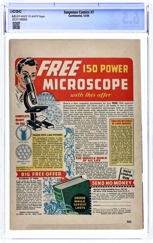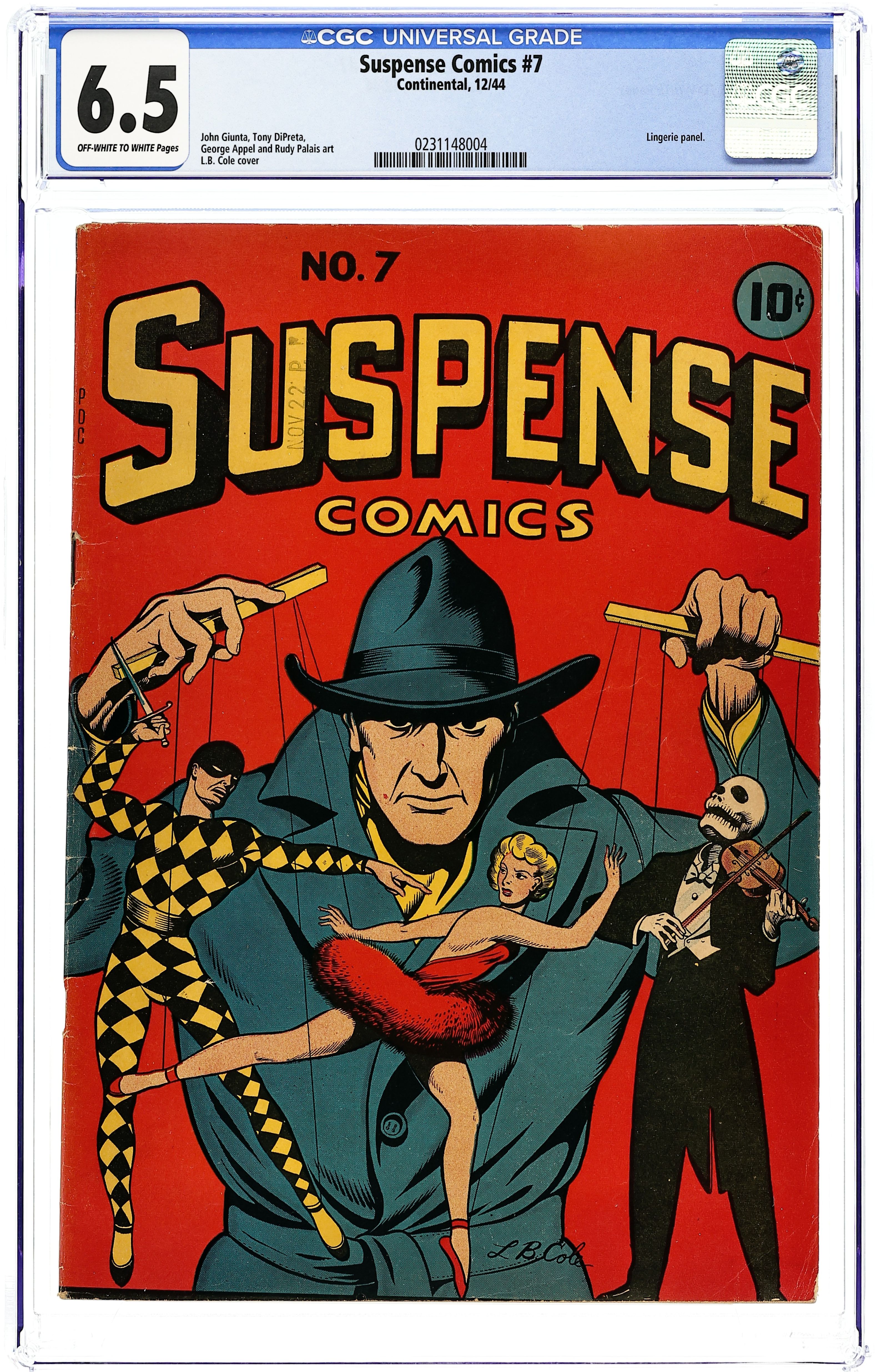 Cover art by L. B. Cole. Bedlam story, art by John Giunta. Mr. Nobody's Clue Corner, art by L. B. Cole. Curse of the Copperhead, art by George H. Appel. The Sands of Time. Sherry Flippe, art by Tony Di Preta. Murder Is On The Air; from The Private Files of the Grey Mask. Caligstranno the Great. License for Murder, art by Rudy Palais. 52 pgs. $0.10. Cover price $0.10. Grade: CGC 6.5 explanation of grade Condition: Used (collectible)