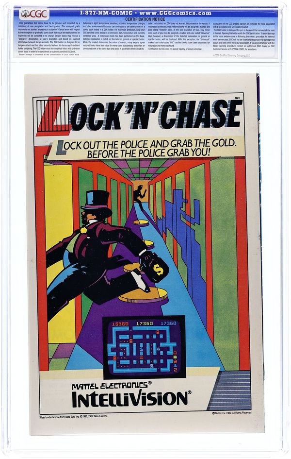 This is the 35-centcover-priced edition which was test marketed only in St. Louis, Missouri and Austin, Texas. Cover art by Ernie Colón. "The Birthright", script by Dan Mishkin and Gary Cohn, art by Ernie Colón; Reaching 13 years old is a milestone in life, especially in the case of Amy Winston; Amy discovers many hidden truths about her past, foremost that she is actually the Princess Amethyst who comes from a world much different from her own, the Gemworld, far removed in time and space from planet Earth; Her eventual return to her family will not be without surprises and challenges. Dungeons & Dragons card game ad. Star Wars Jedi Arena video game ad. 36 pgs., full color. Cover price $0.35. Grade: CGC 9.6 explanation of grade Condition: Used (collectible)