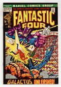 Starts Feb 23 The Silver Surfer and Galactus guest star in "Galactus Unleashed , " Part 3 of 4 . Script by Stan Lee. Pencils by John Buscema and inks by Joe Sinnott with touch-ups by John Verpoorten and John Romita Sr.). Cover by John Buscema and John Romita. Wow! Galactus has come back to Earth! Is this the beginning of the end for the third planet from the sun?!? Maybe not. The Ravager of Worlds is willing to make a deal...he'll spare the Earth if the surfer will become his herald again. After the sky-rider declines, the furious free-for-all begins! The Thing, Human Torch, and Silver Surfer vs. Galactus! Awesome! Meanwhile during the battle, Mr. Fantastic and the Invisible Girl blast off into space to skyjack Galactus' massive starship! (Notes: Galactus previously appeared in Thor 168 and 169. The letters page includes a letter from comics writer Scott Edelman. The letters page also contains a statement of ownership: average print run 460,000; average paid circulation 275,930.) 36 pages Cover price $0.20. Grade: VG+ 4.5 explanation of grade Condition: Used (collectible)