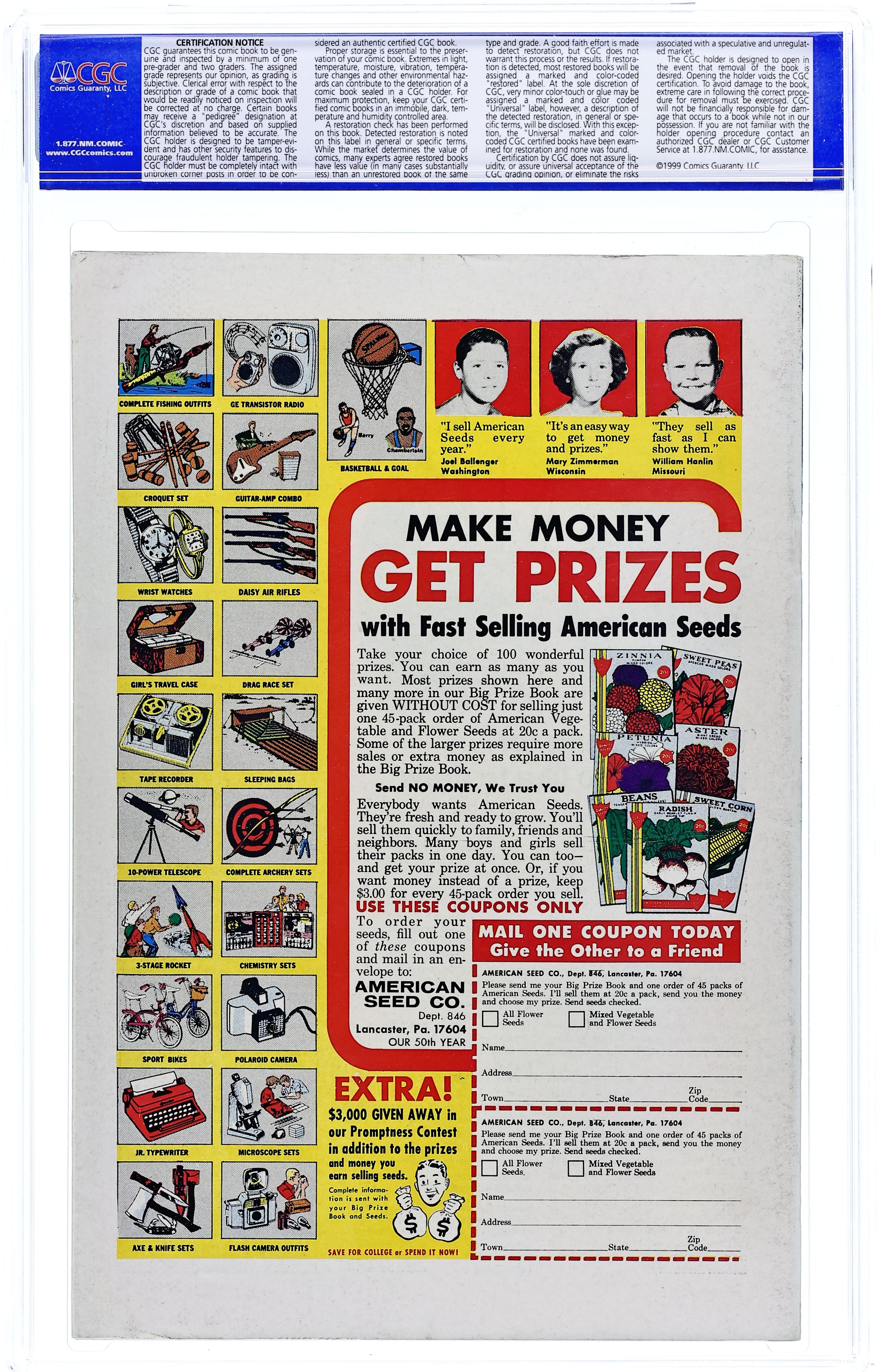 Cover pencils by Gene Colan, inks by John Tartaglione. The Fallen Hero, script by Stan Lee, pencils by Gene Colan, inks by John Tartaglione; Throwing down with the Unholy Three, Daredevil is zapped with the Exterminator's time displacement gun and zapped into limbo, possibly for eternity (or at least until next issue). Letter to the editor from comics writer Mark Gruenwald. 36 pgs. Cover price $0.12. Cover price $0.12. Grade: CGC 8.0 explanation of grade Condition: Used (collectible)
