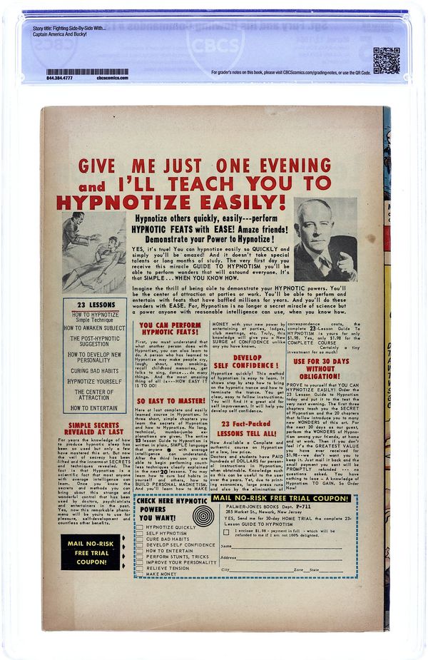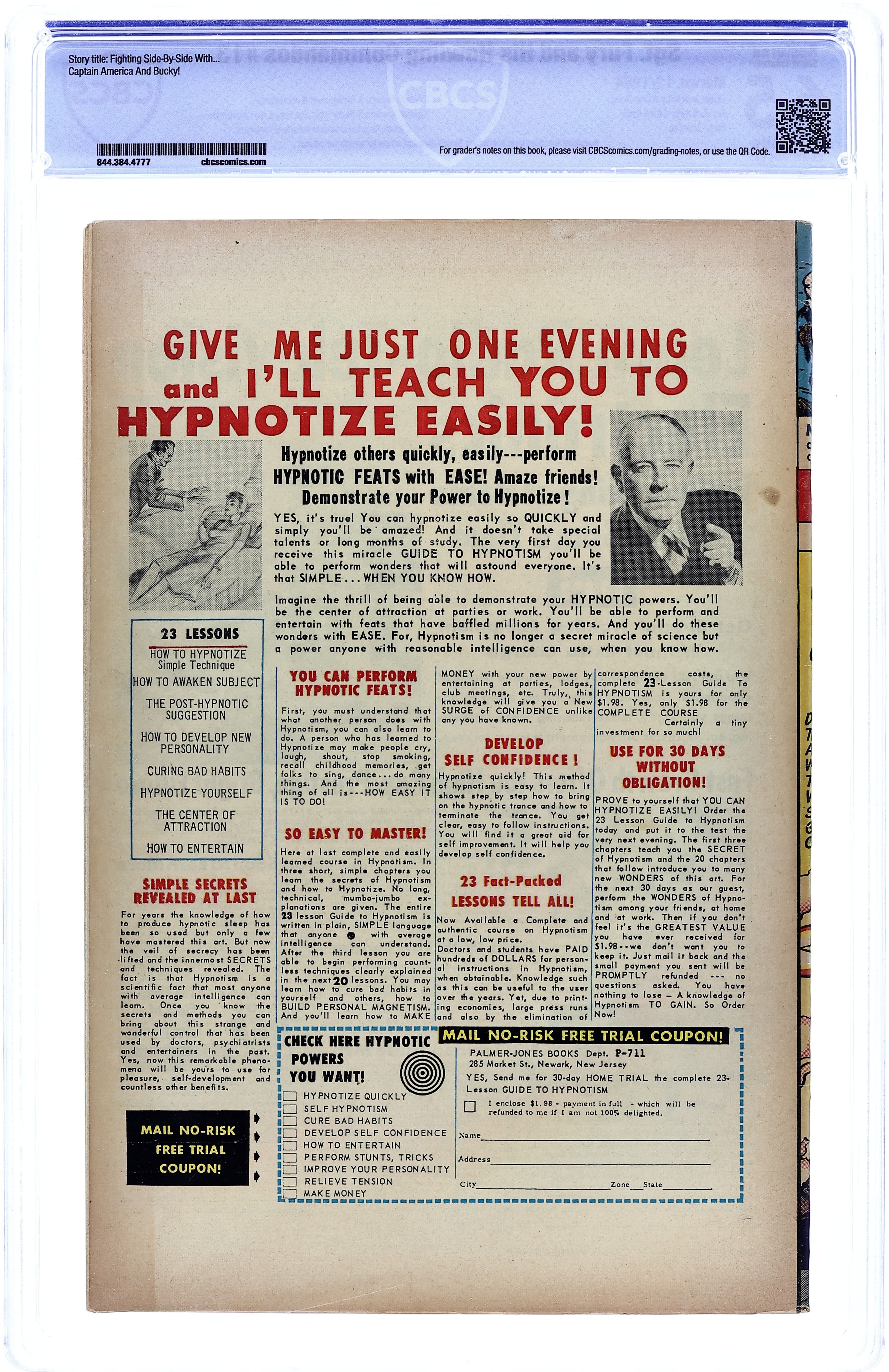 Starts Apr 4 1st printing. Captain America and Bucky guest star in "Fighting Side-By-Side With Captain America and Bucky!" This is the second solo Captain America crossover outside of the Avengers. Script by Stan Lee, pencils by Jack Kirby, inks by Dick Ayers. Kirby cover pencils. NOTE: 1994 JC Penney reprint exists. Can be identified by having a Bic ad on the back cover. 36 pages, full color. Cover price $0.12. Grade: CBCS 6.5 explanation of grade Condition: Used (collectible)