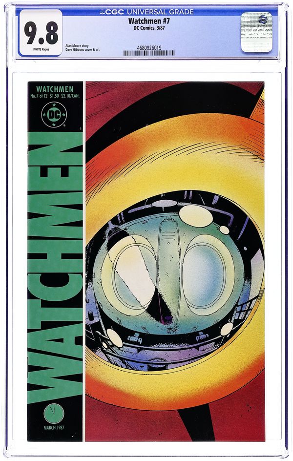 A brother to dragons. Part 7 of 12. Story by Alan Moore. Art and cover by Dave Gibbons. Night Owl and Silk Spectre return to active duty. Along the way we learn a lot more about what makes costumed heroes do what they do. Includes four page fictional text feature presenting, Blood from the shoulder of Pallas, an article by Daniel Dreiberg. 32 pages. Full color. No ads. Cover price $1.50. Grade: CGC 9.8 explanation of grade Condition: Used (collectible)