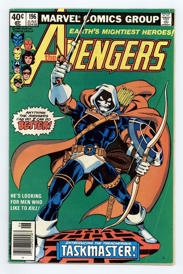 Starts Mar 2 Newsstand Edition. "The Terrible Toll of the Taskmaster" Guest-starring Ant-Man. Script by David Michelinie. Pencils by George Perez. Inks by Jack Abel. Cover by George Perez and Joe Rubinstein. A brand new villain, the Taskmaster, has turned the tables on the Wasp, Yellowjacket, and Ant-Man! The three insect-like super-heroes are prisoners inside the Taskmaster's training academy! The good news is that seven avengers are waiting outside the training compound, but the bad news...none of them know that their teammates are in grave danger! However, Earth Mightiest Heroes follow the ants, and the trail leads to the Taskmaster! Is the villain with the photographic reflexes ready to battle the Avengers? Choose wisely dear Taskmaster! First (full) appearance and origin of the Taskmaster. (Notes: The Taskmaster appears next in Marvel Team-Up 103. The letters page includes a letter from comics writer Kurt Busiek.) 36 pages Cover price $0.40. Grade: VG+ 4.5 explanation of grade Condition: Used (collectible)
