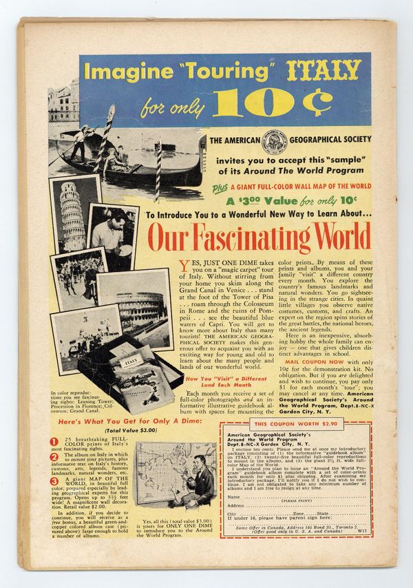 Starts Mar 2 Cover pencils by Curt Swan, inks by Stan Kaye. "Krypton on Earth!", pencils by Wayne Boring, inks by Stan Kaye; Real estate promoter Jonas Smith creates the planned community of Krypton Island, which opens with a pageant featuring a re-enactment of Jor-El and Lara sending Baby Kal-El to Earth; But Superman realizes Smith is a wanted criminal and stops him from smuggling off Krypton Island diamonds that Superman made from coal. "The King of Cages" starring Congo Bill, script by Jack Miller, art by Howard Sherman. "Destination Unknown" starring Tommy Tomorrow, script by Otto Binder, art by Jim Mooney. 36 Pages, Full Color. $.10 Cover price $0.10. Grade: GD+ 2.5 explanation of grade Condition: Used (collectible)