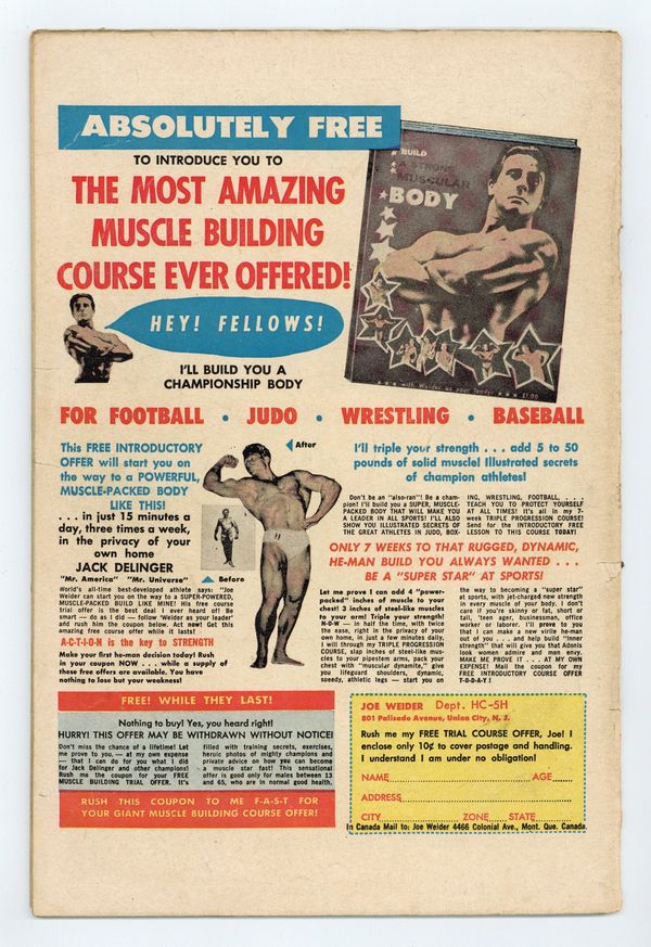 Cover by John Severin. Stories and art by Dick Wood, Matt Baker, Paul Reinman, Fred Kida, Doug Wildey and Al Williamson. Weird (but Comics Code-friendly) tales from publisher Harvey. A scientist is transformed by a Dr. Manhattan-like accident, in a story with art by comics legends Matt Baker and Al Williamson. An explorer discovers to his horror that what he thought was the Fountain of Youth is actually the Fountain of Age. The ranger in a South American watch station learns he is in the path of a march of driver ants, and foolishly decides to stand and fight. Half Man—Half What?; Defeat!; My Robot Plants; The Fountain of Age; The Flashlight; The Fibber; 12,000 to 1!. 36 pages, full color. Cover price $0.10. Grade: VG- 3.5 explanation of grade Condition: Used (collectible)