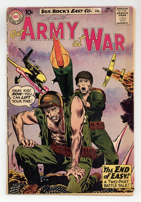 Cover art by Joe Kubert. End of Easy starring Sgt. Rock / story, script by Bob Kanigher, art by Joe Kubert. One of our Jets is Missing, script by Bob Haney, art by Jack Abel. 36 Pages, Full Color. Cover price $0.10. Grade: GD- 1.8 explanation of grade Condition: Used (collectible)