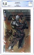 Starts Apr 4 Limited 1 for 100 Retailer Incentive Variant Cover. (W) Joshua Williamson (A) Tom Reilly, Jordie Bellaire (CA) Ludo Lullabi NEW ARCTHE DREADNOK WAR BEGINS HERE!When Cobra Commander is betrayed by one of his closest allies, hes targeted for revenge by the Dreadnoks!But in his darkest hour, the only one who can save Cobra Commander is…Duke?The team-up you never expected kicks off THE BIGGEST G.I. JOE story yet, one so action-packed that it will ship bi-weekly from the dream team of Joshua Williamson and Tom Reilly! Cover price $3.99. Grade: CGC 9.8 explanation of grade Condition: Used (collectible) unless item is a new release