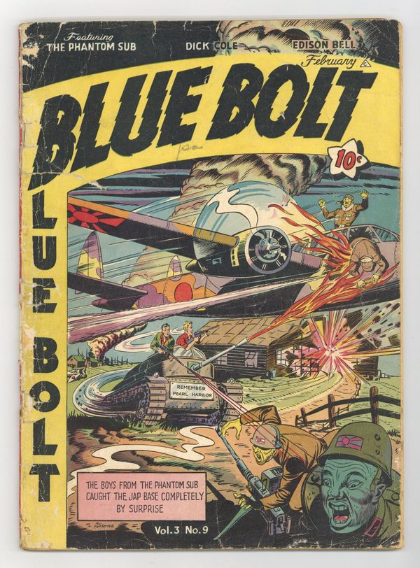 Published Feb 1943 by Funnies, Inc..Blue Bolt (1940-1949) Vol. 3 #9 FR/GD 1.5 (R)