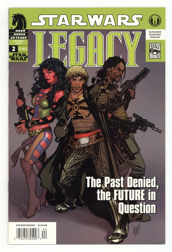Starts Mar 9 First Printing. JOHN OSTRANDER (W), JAN DUURSEMA (P), DAN PARSONS (I), BRAD ANDERSON (C), and ADAM HUGHES (Cover). Over the bodies of their enemies, two Jedi make a pact that will set them on the path to a greater danger than they have ever known . . .Bounty hunters capture a prisoner whose presence will test their resolve?and the strength of their alliance . . . A Sith apprentice is given the honorific "Darth" and sent to hunt a quarry whose capture?or death?could shake an empire to its foundations . . . And a Princess finds herself alone in the galaxy, pursued by those she once counted as allies. This is only the second issue of the new ongoing series Star Wars: Legacy and already there's more adventure and more intrigue than we can even hint at! FC, 32pg Cover price $2.99. Grade: FN- 5.5 explanation of grade Condition: Used (collectible)