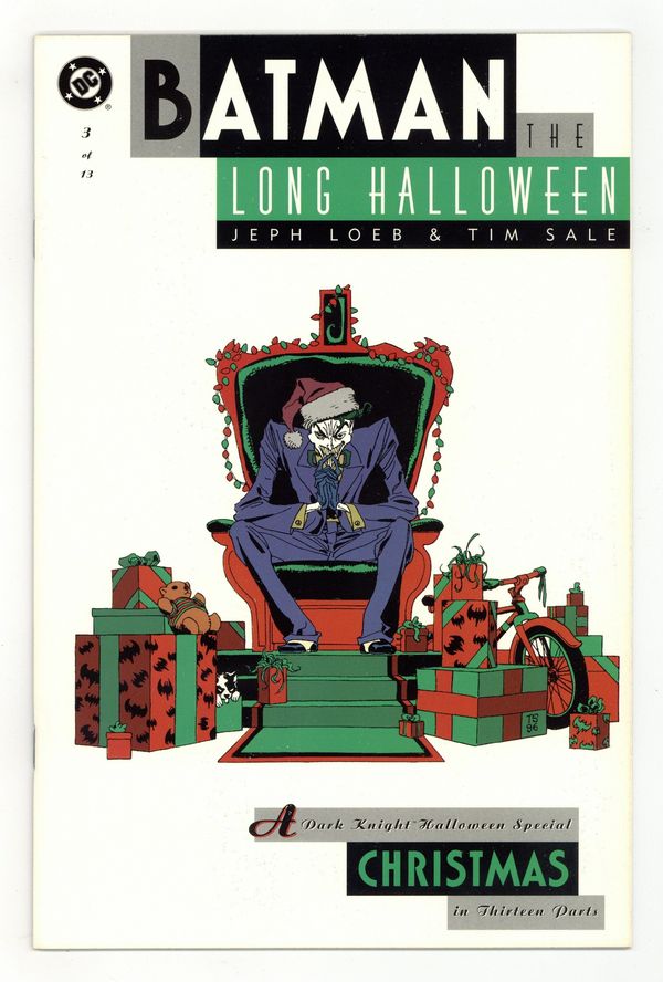 Starts Mar 9 "Christmas." In his distinctly twisted way, The Joker conducts his own investigation into who the killer (called Holiday) really is. Script by Jeph Loeb, art and cover by Tim Sale. Cover price $2.95. Grade: VF- 7.5 explanation of grade Condition: Used (collectible)