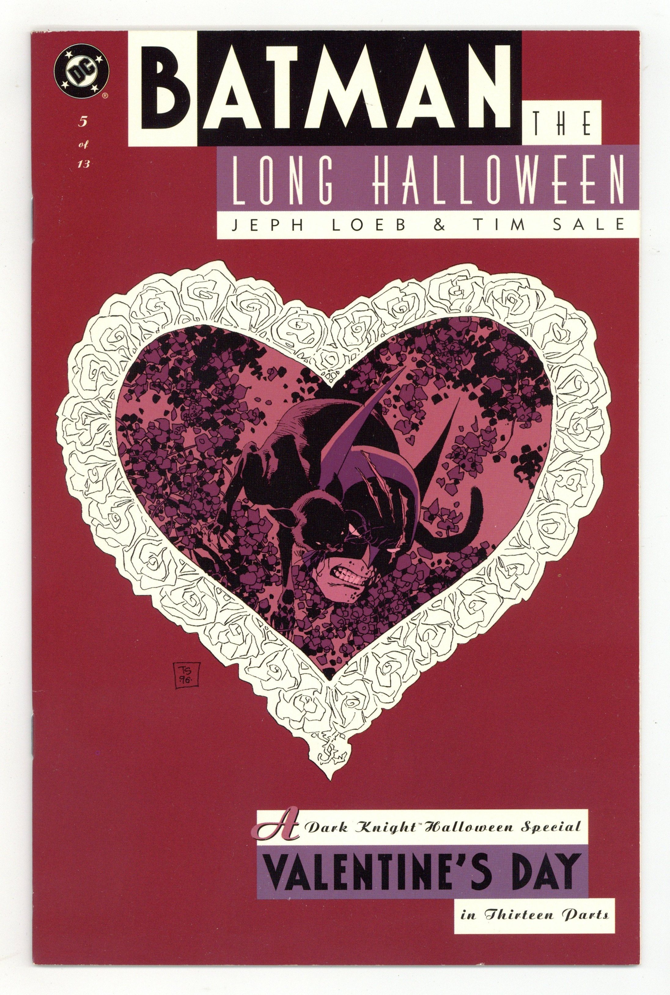 Starts Mar 9 "Valentine's Day." Batman/Bruce Wayne is caught in a love triangle with Catwoman and Poison Ivy. Captain Gordon (the future commissioner, of course) and Harvey Dent experience problems in their personal lives. Script by Jeph Loeb, art and cover by Tim Sale. Cover price $2.95. Grade: VF 8.0 explanation of grade Condition: Used (collectible)
