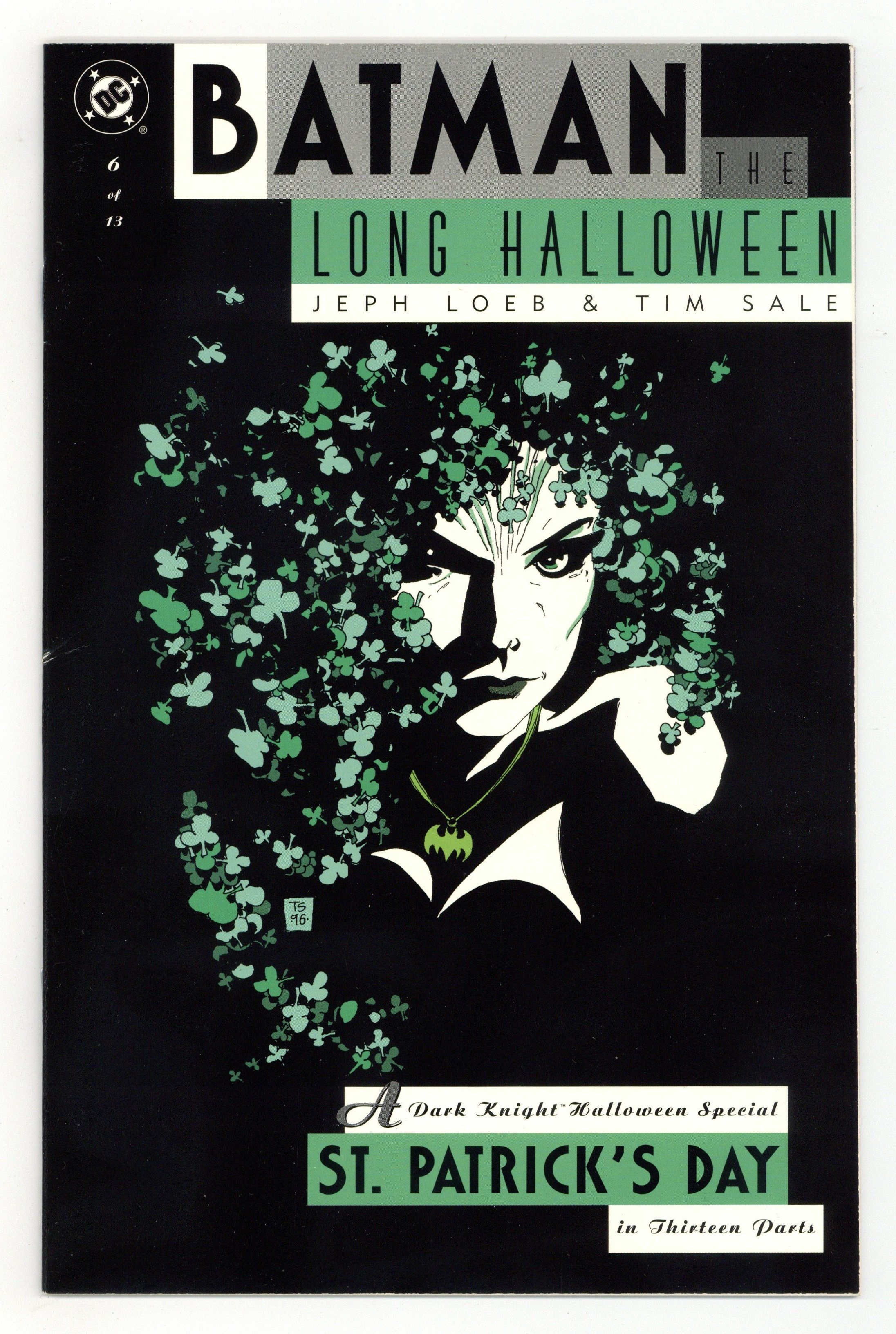 Starts Mar 9 "St. Patrick's Day." Catwoman saves Batman from Poison Ivy's controlling influence. The subplot tying Bruce Wayne to Carmine Falcone thickens. Script by Jeph Loeb, art and cover by Tim Sale. Cover price $2.95. Grade: FN+ 6.5 explanation of grade Condition: Used (collectible)