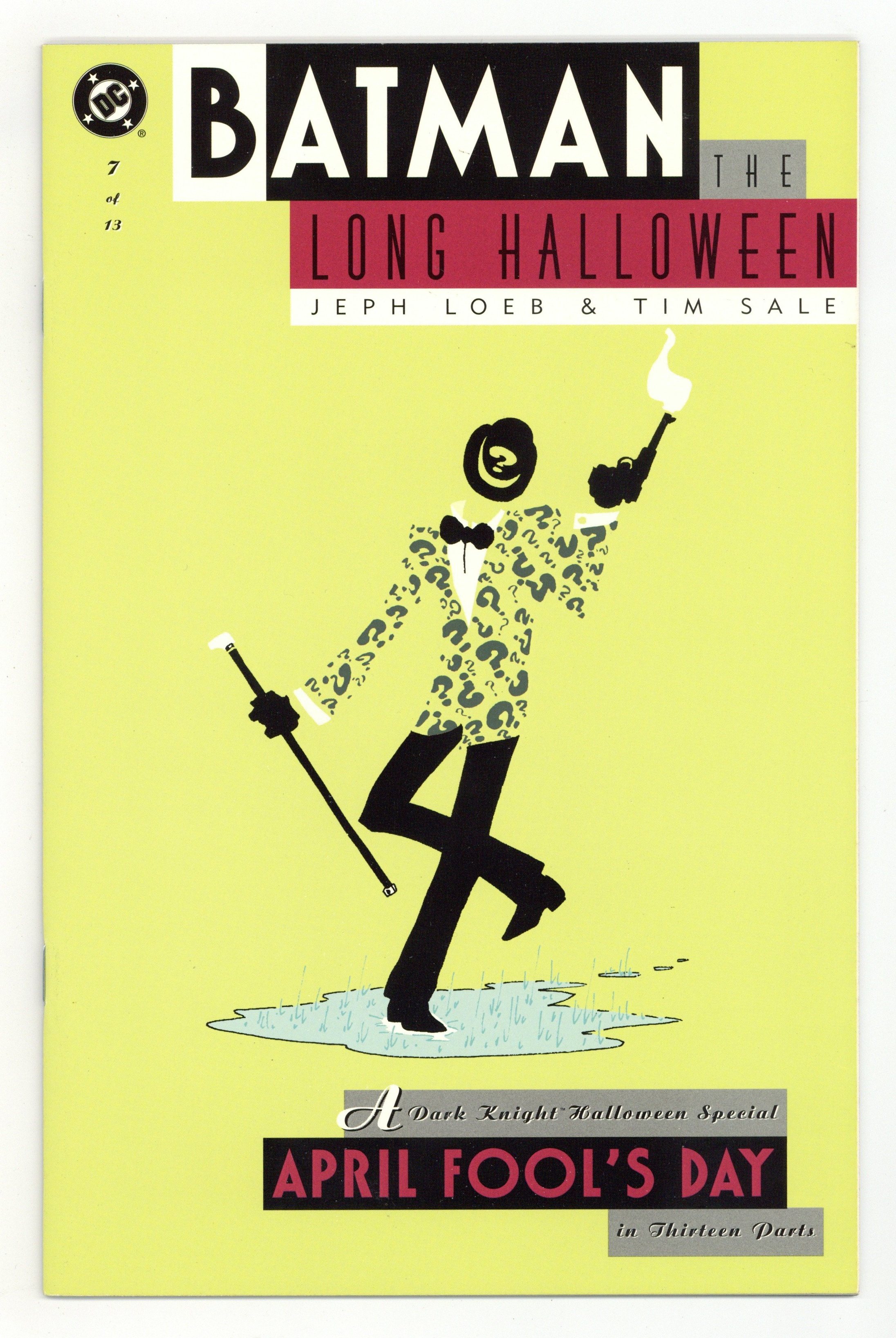 Starts Mar 9 "April Fool's Day." Batman and the Riddler, each using a different, character-specific approach, attempt to uncover the true identity of the killer Holiday. Script by Jeph Loeb, art and cover by Tim Sale. Cover price $2.95. Grade: VF- 7.5 explanation of grade Condition: Used (collectible)