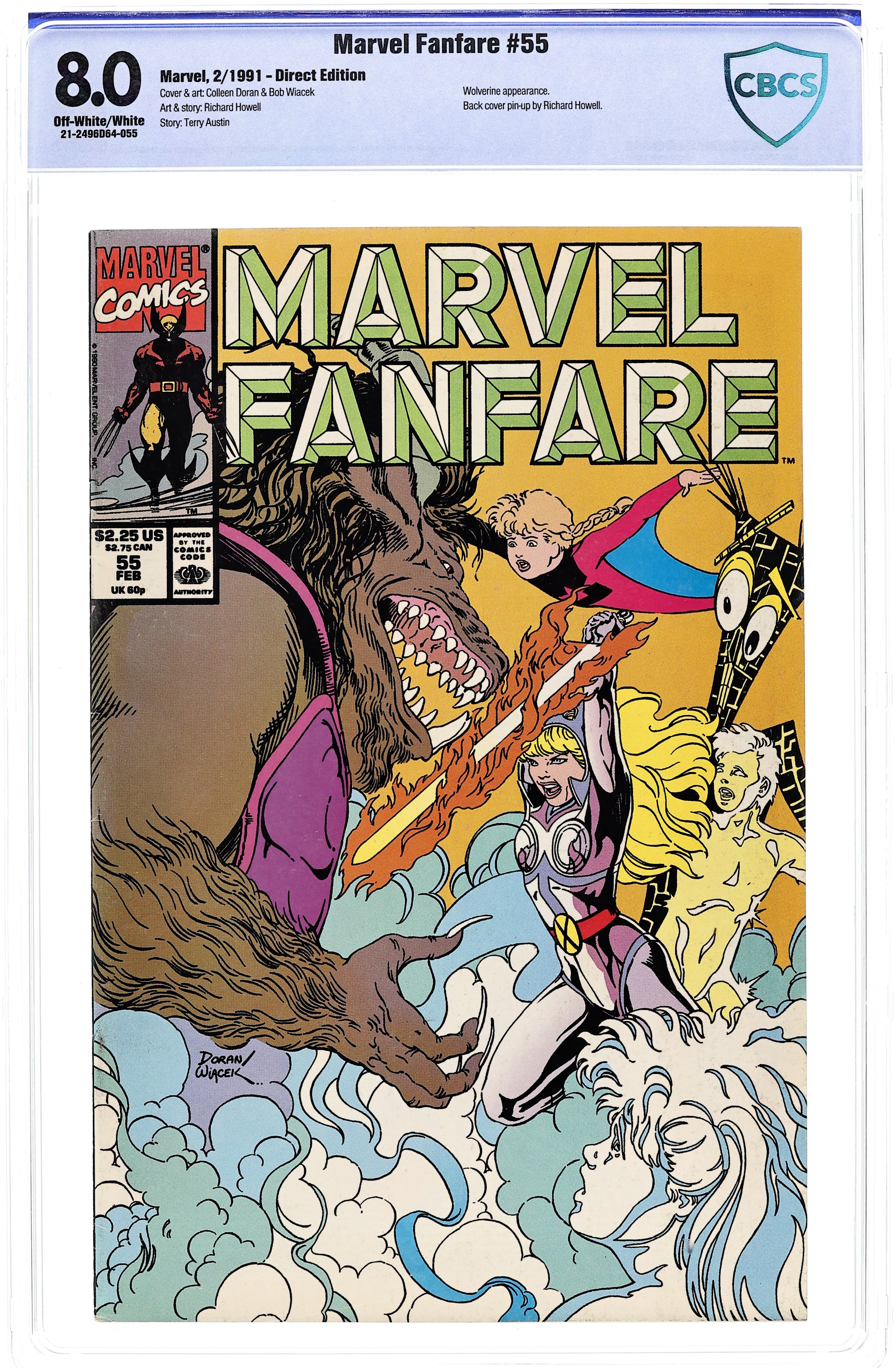 Power Pack and the New Mutants star in "The Battle of P.S. 87!" Script by Terry Austin, pencils by Colleen Doran, inks by Bob Wiacek. Wolverine back-up: "Death in the Dark Woods." Script and art by Richard Howell. Letter to the editor from Charles Novinskie (Topps Comics). Doran/Wiacek front cover; Howell back cover. Cover price $2.25. Grade: CBCS 8.0 explanation of grade Condition: Used (collectible)