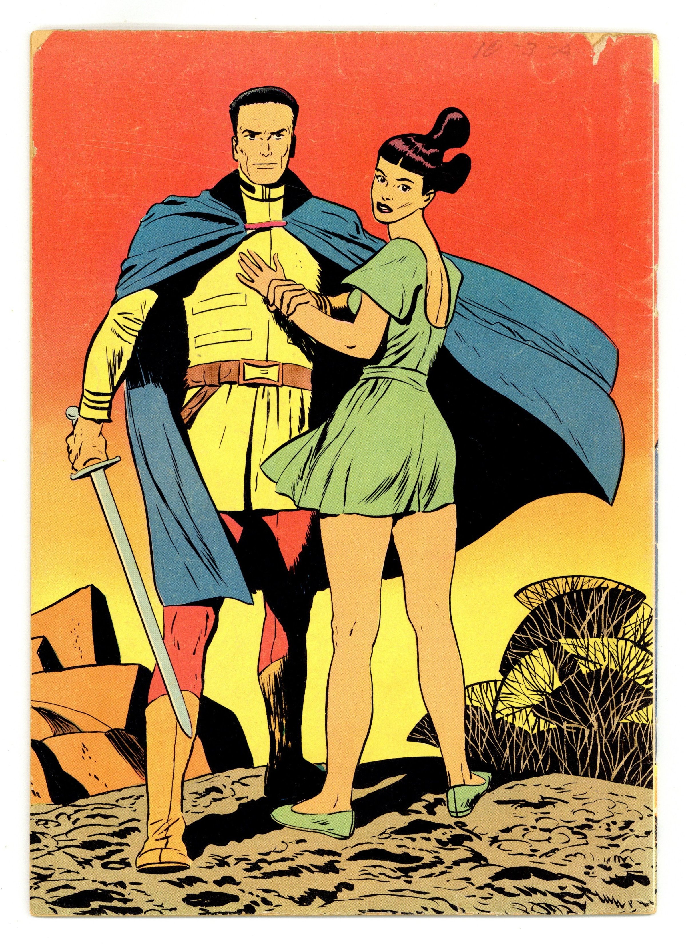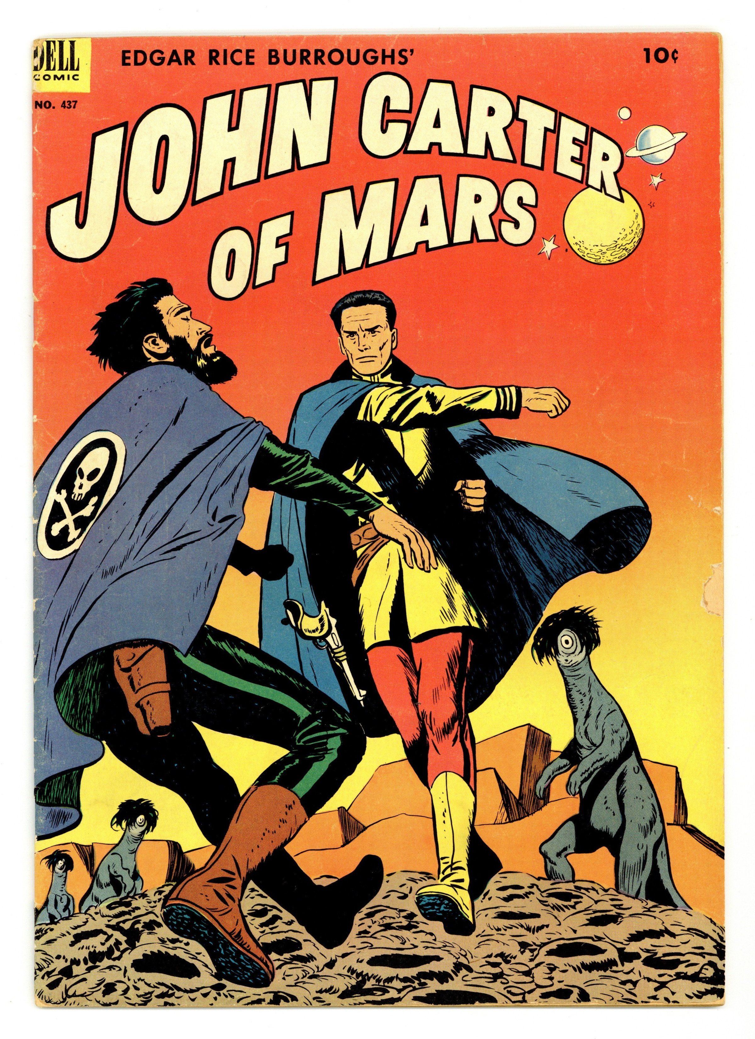 Indicia title is "Edgar Rice Burroughs' JOHN CARTER OF MARS, No. 437." Cover art by Jesse Marsh. The Black Pirates of Omean, art by Jesse Marsh; After ten years away from Mars, John Carter is finally able to return and finds himself in the Valley Dor, where every Martian comes at the end of life; When savage plant men attack three Tharks. John is able to save one, who coincidently is an old friend, Tars Tarkas; John and Tars escape the plant men through a passage that leads them into the city of the Therns; There they rescue a slave girl, Thuvia, and learn the Therns are being raided by the Black Pirates of Omean, who have captured Dejah Thoris, John's wife on Barsoom; John takes over a pirate cruiser where Phaidor, the princess of Thern is held; After John defeats the pirate captain Xodar, the three go to the Temple of Issus deep under the South Pole of Mars. Illustration of John Carter and Dejah Thoris on back cover by Marsh. 36 pages, full color. Cover price $0.10. Grade: VG 4.0 explanation of grade Condition: Used (collectible)